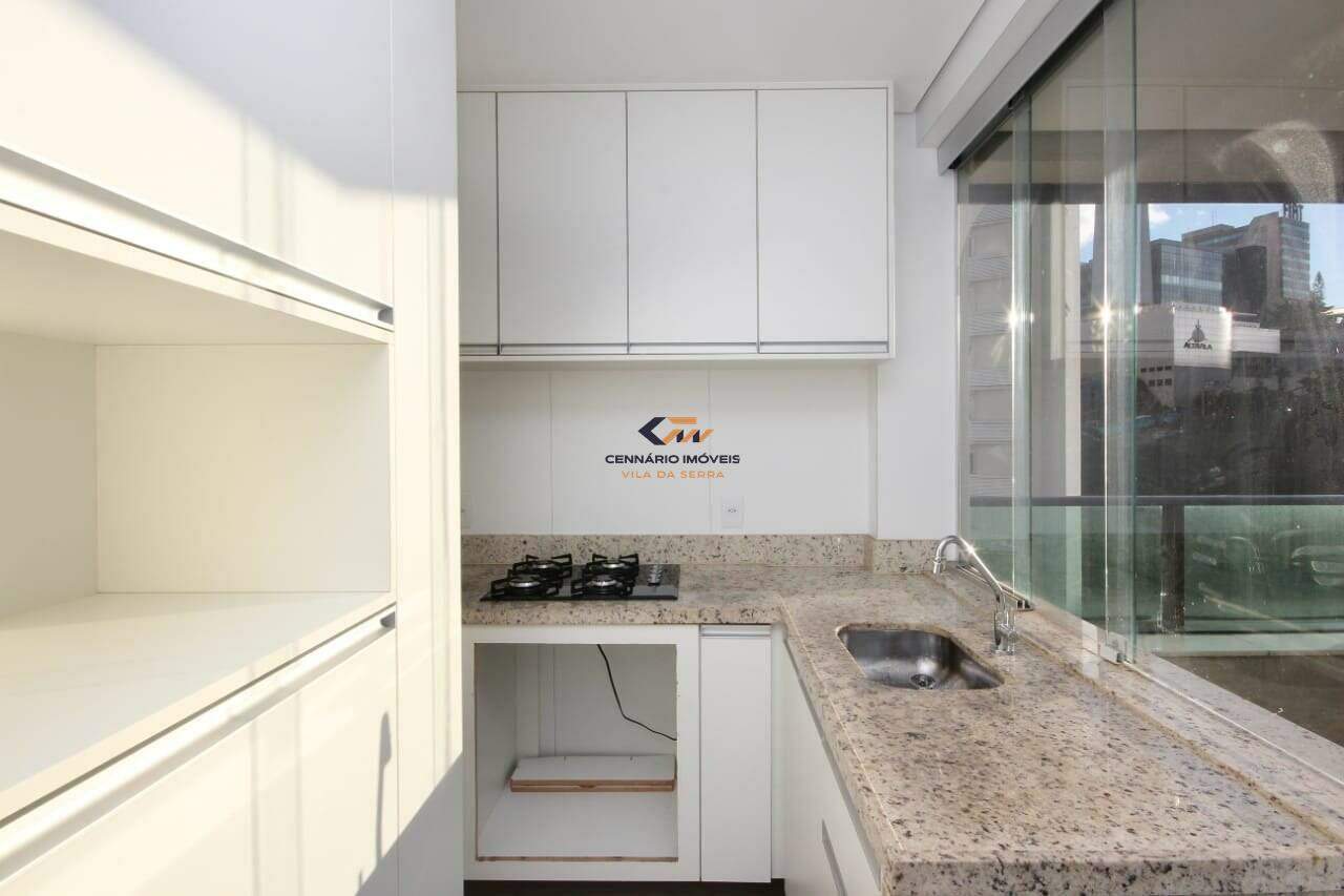 Apartamento 1 quarto para venda no condomínio Tribeca Square, em Nova Lima -MG. Prédio: 100% Revestido em textura, lazer completo, portaria 24 horas, piscina descoberta e piscina coberta com raia e aquecida, SPA, espaço gourmet, sauna, academia, salão de festas, sistema de segurança com circuito fechado de TV, wireless no pilotis, lavanderia concierge, 1 vaga de garagem livre e coberta. Apartamento: Sala para dois ambientes com piso em porcelanato, varanda com passa prato, lavabo, cozinha com piso em porcelanato e bancada em granito, armários, quarto suíte com piso em laminado, armário e banho suíte com piso em porcelanato e bancadas em mármore, box, espelhos e armários.