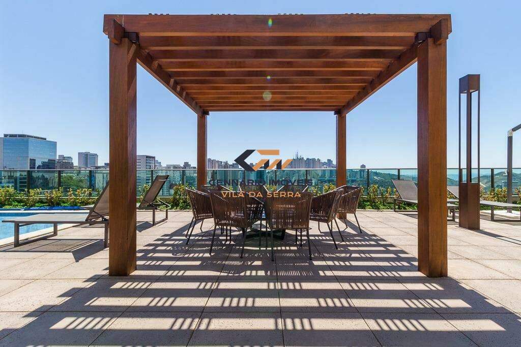 Apartamento 1 quarto para venda no condomínio Tribeca Square, em Nova Lima -MG. Prédio: 100% Revestido em textura, lazer completo, portaria 24 horas, piscina descoberta e piscina coberta com raia e aquecida, SPA, espaço gourmet, sauna, academia, salão de festas, sistema de segurança com circuito fechado de TV, wireless no pilotis, lavanderia concierge, 1 vaga de garagem livre e coberta. Apartamento: Sala para dois ambientes com piso em porcelanato, varanda com passa prato, lavabo, cozinha com piso em porcelanato e bancada em granito, armários, quarto suíte com piso em laminado, armário e banho suíte com piso em porcelanato e bancadas em mármore, box, espelhos e armários.