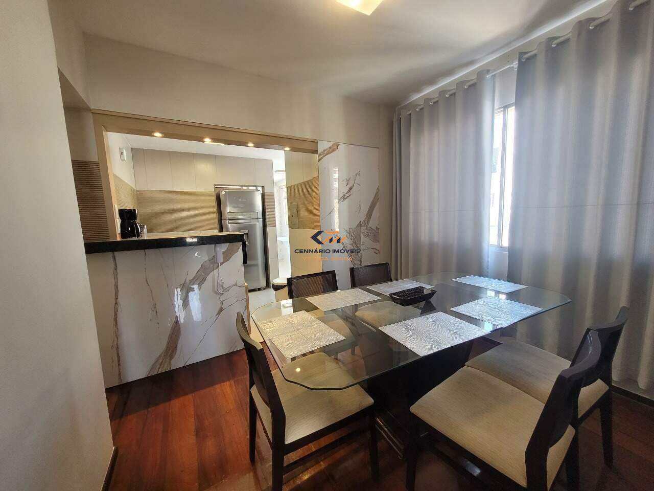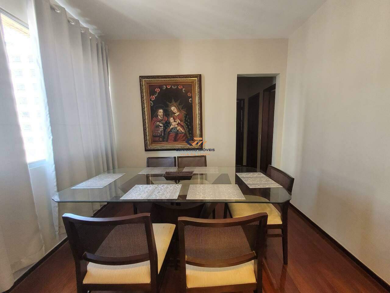 Apartamento Mobiliado, 3 quartos, 1 suite para venda no bairro Lourdes, Belo Horizonte -MG. Prédio: 100% Revestido, portaria 24 horas, salão de festas, 1 vaga de garagem livre e coberta. Apartamento: Sala para 2 ambientes com piso em tabua corrida, home office, sala de jantar, cozinha americana com piso e bancada em granito, armários, área de serviço. 3 quartos com piso me tabua corrida, armários, sendo 1 suite, banhos com pisos e bancadas em granito, armários, box, espelhos.