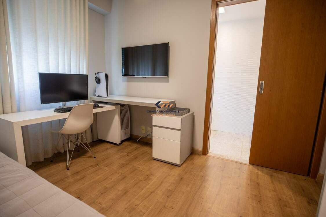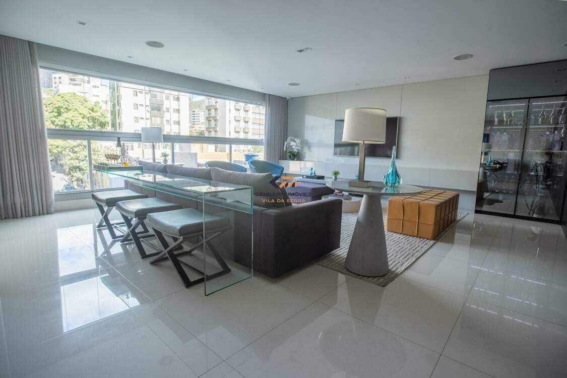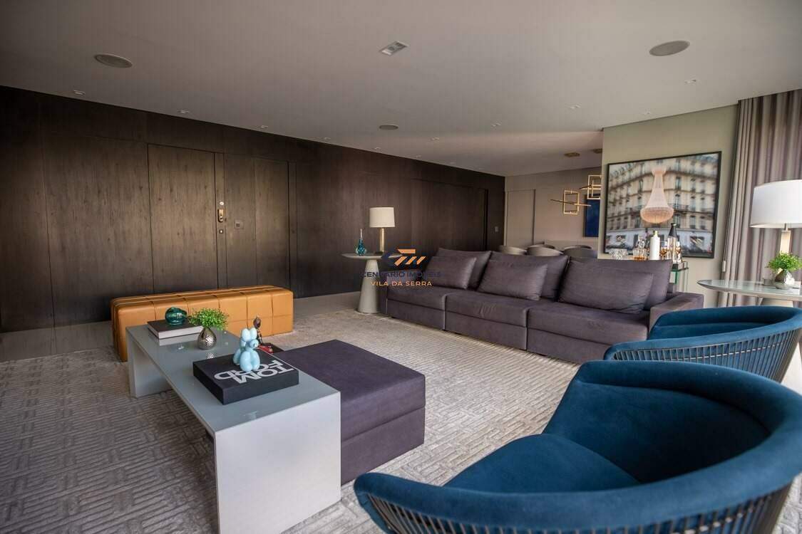 Apartamento 4 quartos, 3 suítes, 4 vagas, no Bairro Cruzeiro em Belo Horizonte - MG Prédio: 100% revestido em granito; portaria 24 horas; 2 apartamentos por andar; 1 elevador social; Salão de festas com mezanino e mobiliário; espaço gourmet mobiliado e com equipamentos; 2 quadras; Piscina coberta, aquecida e com raia; sauna; espaço kids; academia; bosque, ar condicionado, 04 vagas de garagem, box de despejo, elevador com senha. Apartamento: todo decorado, com 162m² de área interna, sala para 03 ambientes com piso em porcelanato, cozinha integrada com a sala podendo ser isolada por uma porta de correr; varanda integrada à sala; lavabo, 3 quartos com piso em laminado,sendo três suítes; suíte máster com closet; sala para maquiagem, banhos com box Blindex e pisos e bancadas em granito, armários e espelhos, Cozinha com armários e eletrodomésticos embutidos; Área de serviço com armários e o piso em granito; Banho para empregada.