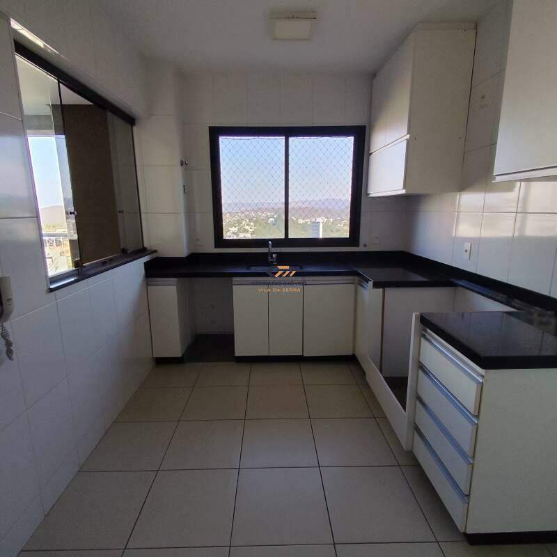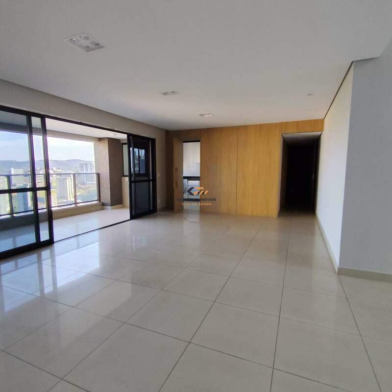Apartamento 4 quartos para venda no Vila da Serra de 166 m², no edficio Miragem. Prédio: Condomínio com lazer completo, torre única, hall de entrada imponente, 03 elevadores, portaria 24 horas, lazer com piscina adulto e infantil, espaço gourmet, salão de festas, sauna, academia, espaço kids, salão de jogos, 3 vagas de garagem. Apartamento: Sala ampla para 03 ambientes com piso em porcelanato, teto rebaixado com projeto de iluminação, p[e direito duplo, varanda gourmet fechada com cortina de vidro, pé direito duplo, Lavabo; 4 quartos transformados em 03 quartos, sendo 01 suíte; Rouparia; banhos com pisos e bancadas em granito, armários, box, espelhos, armários. Cozinha com piso e bancadas em granito, armários; Área de serviço; DCE.