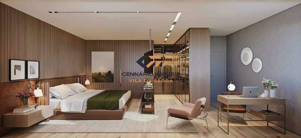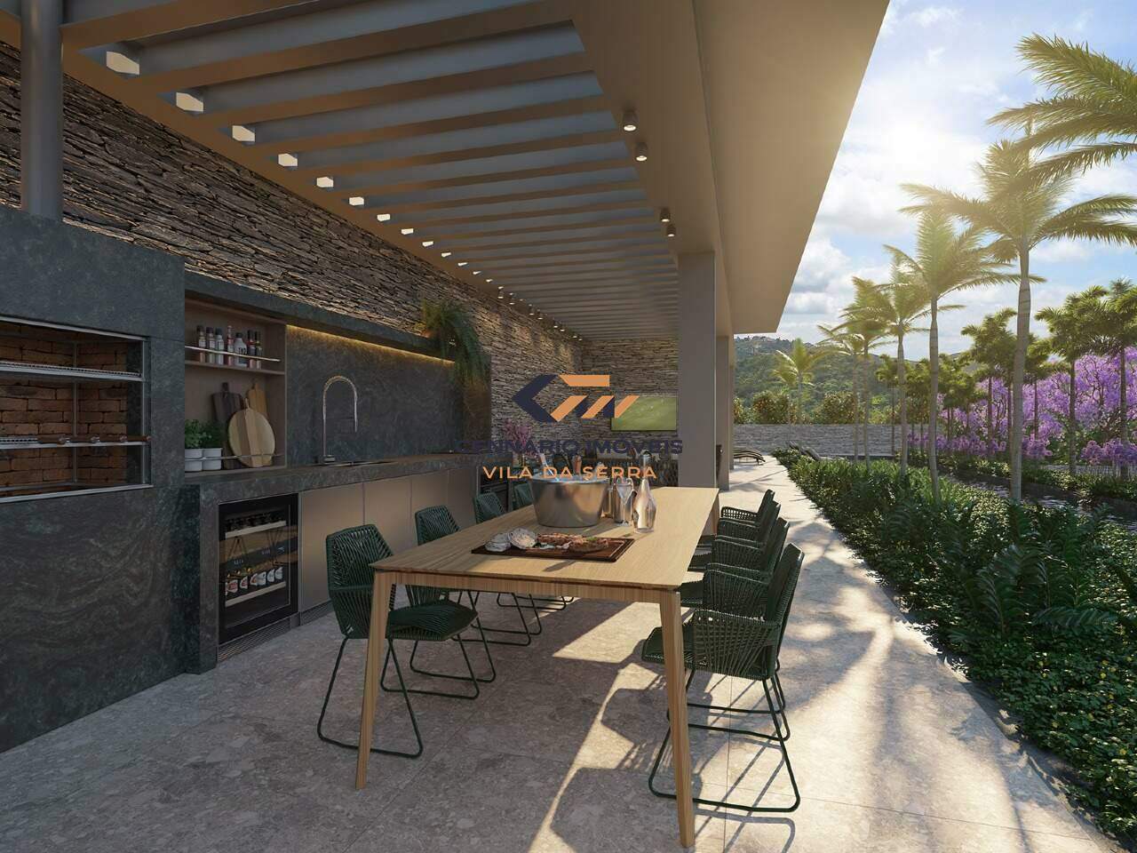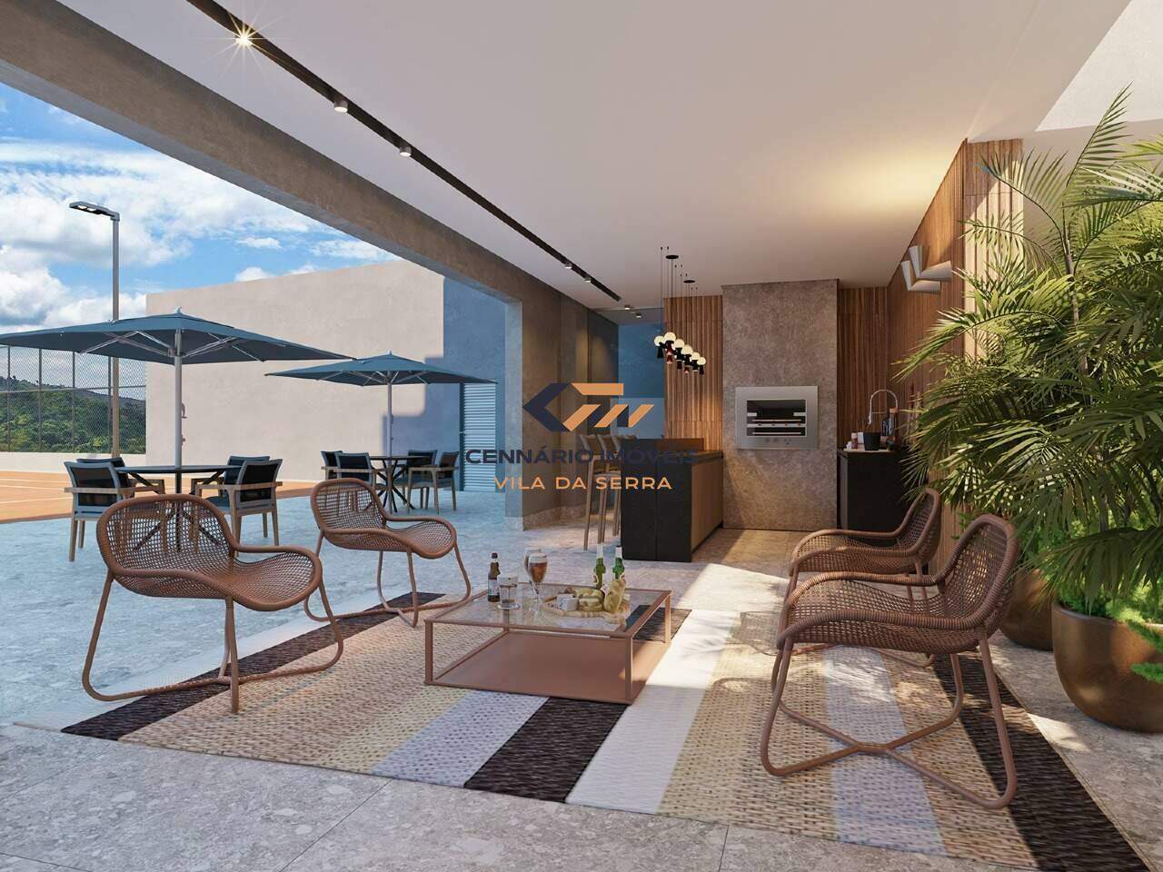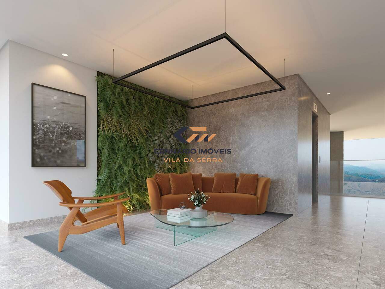 ENTREGA EM 2024 Apartamento 4 quartos no Vila da Serra próximo ao Serena Mall Prédio: Fachada 100% revestida em granito em pele de vidro, 27 pavimentos, 02 apartamentos por andar a partir do 7 pavimento, 02 elevadores sociais com vista panorâmica na área de lazer e 01 de serviço, fechaduras biométricas, box nas garagens, delivery e guarda volumes, circuito interno de TV, garagem com vaga de pânico, guarita com entrada social e de serviço independente, hall social integrado e integrado com jardins, laundge de espera, mata de preservação ao lado do empreendimento, porta cochère, controle de acesso 24 horas e tomadas para carros elétricos. Deck com fire pit, dech molhado, Espaço gourmet horta, Kid?s room, pet place, piscina com raia, piscina infantil, playground, pomar, quadra poliesportiva, salão de festas com varanda,sala de massagem, saúna, spa, espaço fitness, quadra de tênis,04 vagas de garagem. Apartamento: Opções 1) 04 quartos com 02 suítes e 02 semi-suítes; 2) 03 suítes, sendo a master ampliada com banheira de hidromassagem; 3) 03 suítes com sala ampliada.