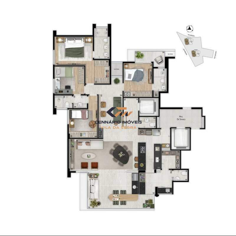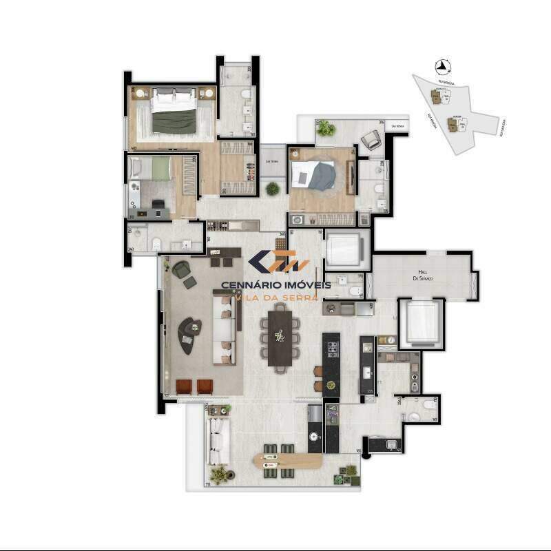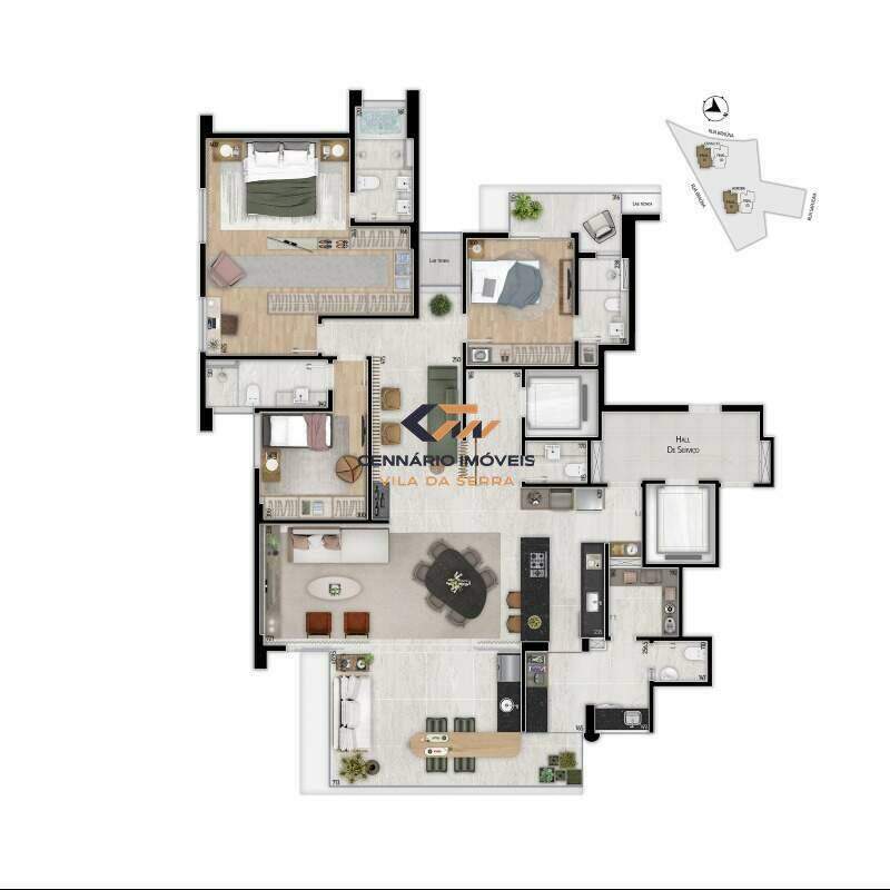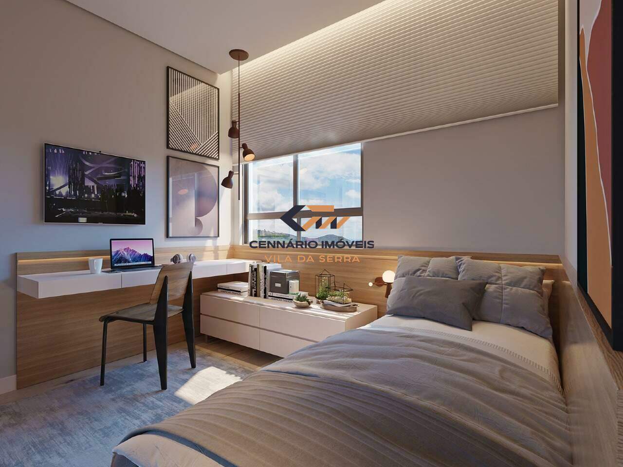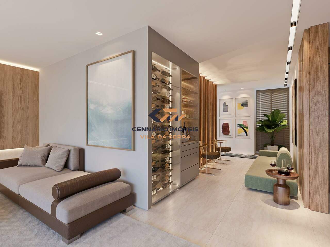 ENTREGA EM 2024 Apartamento 4 quartos no Vila da Serra próximo ao Serena Mall Prédio: Fachada 100% revestida em granito em pele de vidro, 27 pavimentos, 02 apartamentos por andar a partir do 7 pavimento, 02 elevadores sociais com vista panorâmica na área de lazer e 01 de serviço, fechaduras biométricas, box nas garagens, delivery e guarda volumes, circuito interno de TV, garagem com vaga de pânico, guarita com entrada social e de serviço independente, hall social integrado e integrado com jardins, laundge de espera, mata de preservação ao lado do empreendimento, porta cochère, controle de acesso 24 horas e tomadas para carros elétricos. Deck com fire pit, dech molhado, Espaço gourmet horta, Kid?s room, pet place, piscina com raia, piscina infantil, playground, pomar, quadra poliesportiva, salão de festas com varanda,sala de massagem, saúna, spa, espaço fitness, quadra de tênis,04 vagas de garagem. Apartamento: Opções 1) 04 quartos com 02 suítes e 02 semi-suítes; 2) 03 suítes, sendo a master ampliada com banheira de hidromassagem; 3) 03 suítes com sala ampliada.