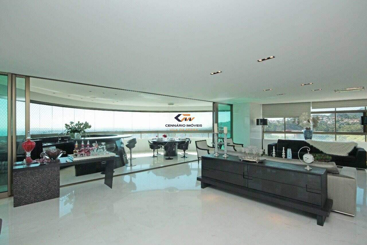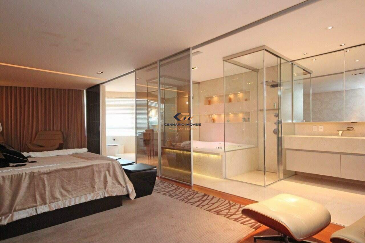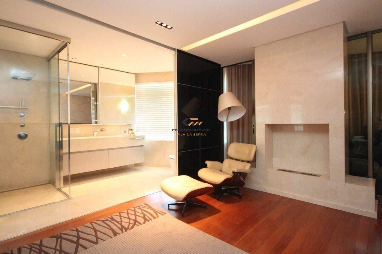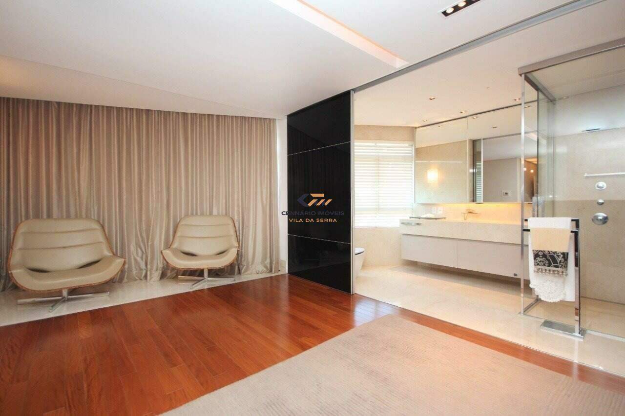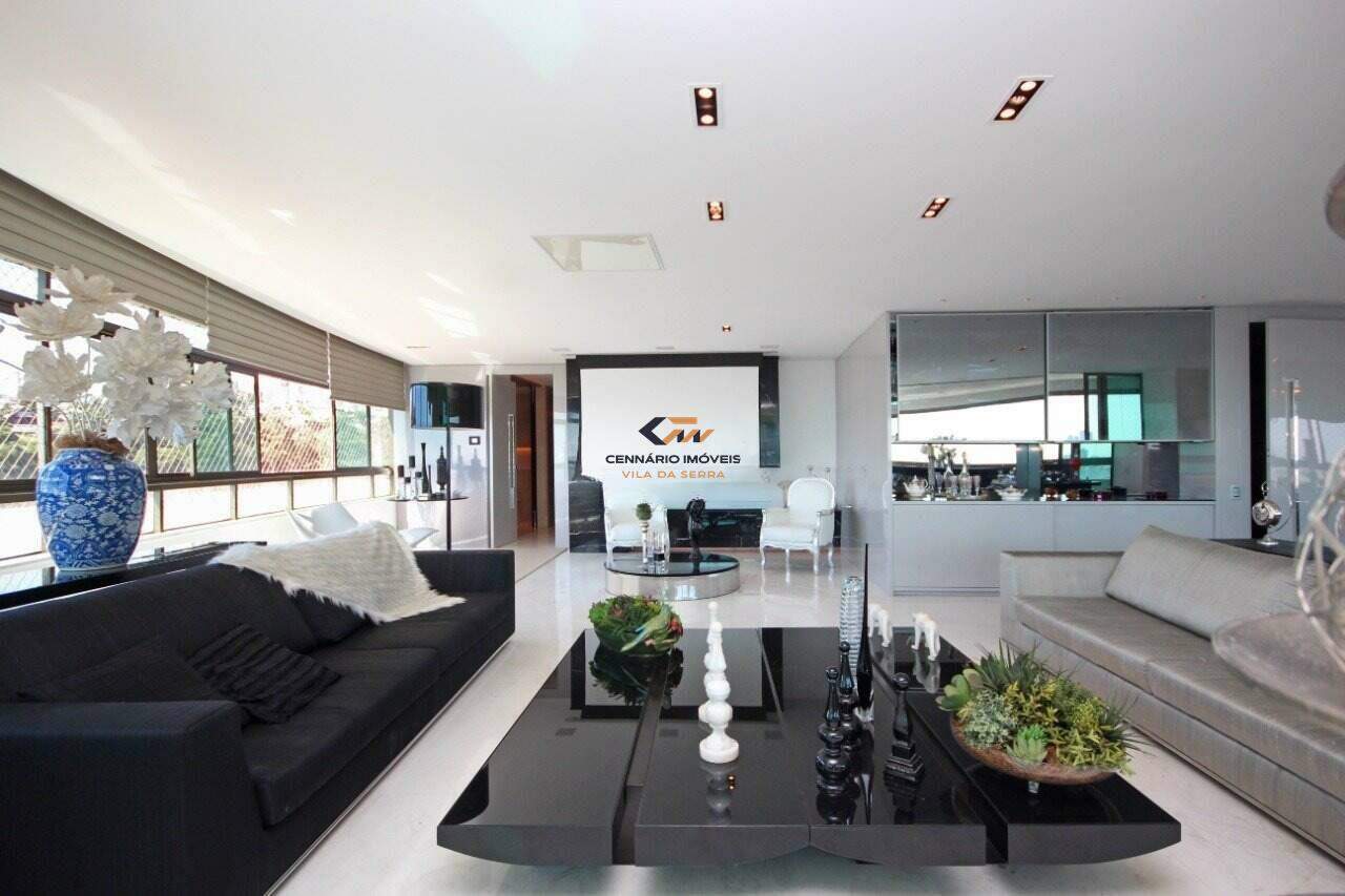 Apartamento alto luxo 3 quartos 402 m²! Prédio projetado pelo Gustavo Penna , em ótima localização; hall social decorado; porteiro 24 hs; circuito interno de TV; lazer completo com piscina com raia, piscina infantil, sauna, espaço gourmet, salão de festas, salão de jogos, espaço fitness, kids, quadra de tênis coberta, squash; vagas para visitantes. Apartamento com projeto atual de interiores do escritório Bellini Arquitetura e Construção , São 402 m2 de muito requinte, sala para 3 amplos ambientes, piso em mármore branco piguês.Varanda gourmet com bancadas em Silestone, já com grelha e cooktop, além da lava louça. Pendentes italianos e vista surreal para Belo Horizonte.Hall de entrada exclusivo com divisórias Cinex, elevador codificado.Uma das salas conta com lareira.Forma elíptica do prédio possibilita uma vista 180 graus das salas.Lavabo com todo revestido em mármore crema marfil, pia esculpida em pedra Ônix e bacia da linha quadratta da Deca Parte íntima com piso em madeira maciça.Estar íntimo amplo com detalhes em pastilha de madeira, já com toda marcenaria instalada em laca bege, 3 Suítes, a suíte de hospedes em mármore crema marfil, chuveiro hansgrohe e bacia sanitária Duravit.Suíte junior com marcenaria em laca, banho com bancadas em mármore nero marquina, cabine de banho hermeticamente fechada, bacia sanitária Duravit da linha Starck e cuba Roca, suíte máster com varanda, super ampla, com closet amplo, sala de banho com ferragens e chuveiros hansgrohe, hidromassagem e bacias sanitárias hasgrohe.Cozinha/Copa montada e com armários, elevador de carga e de veículos chega diretamente na cozinha e ali tem uma vaga de garagem interna. Banheiro de empregada. 6 vagas cobertas, elevador de carro ( sendo 1 vaga no pavimento do apartamento).