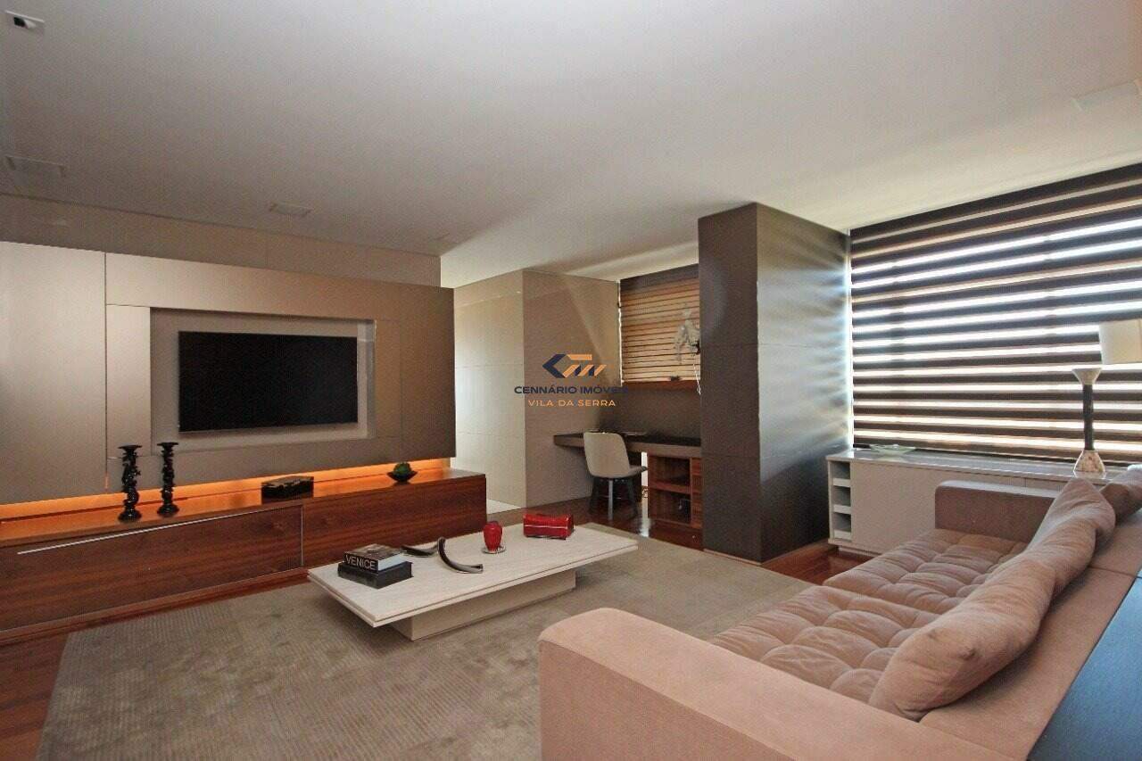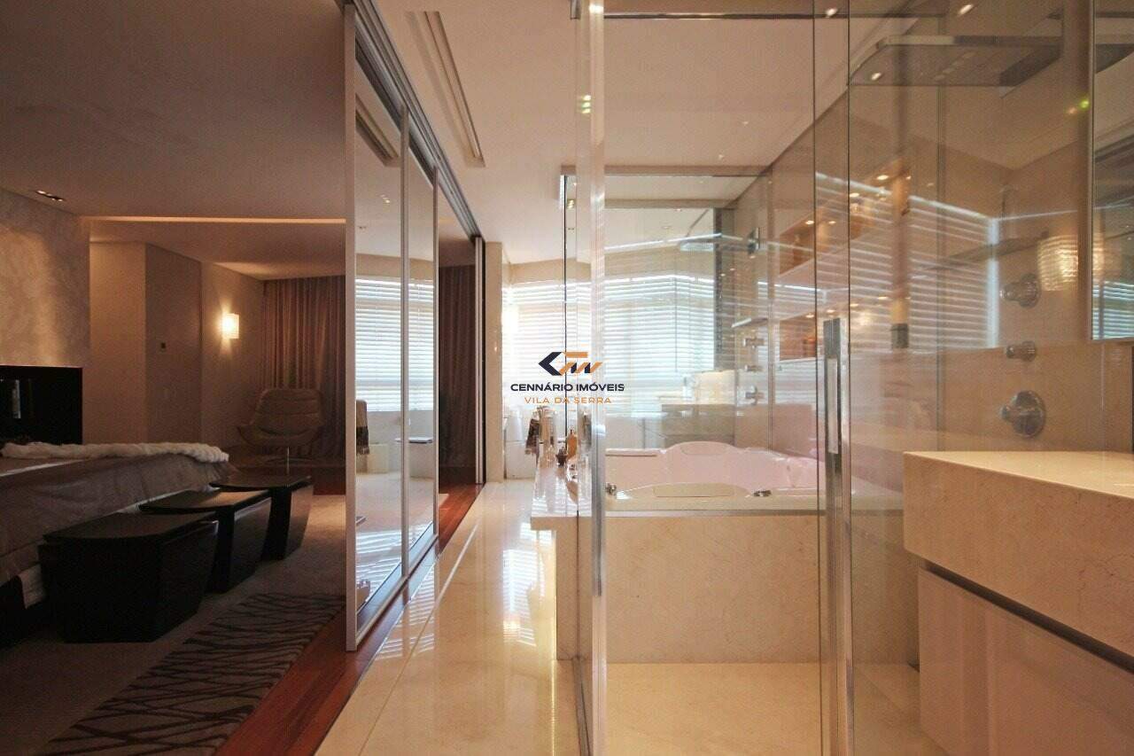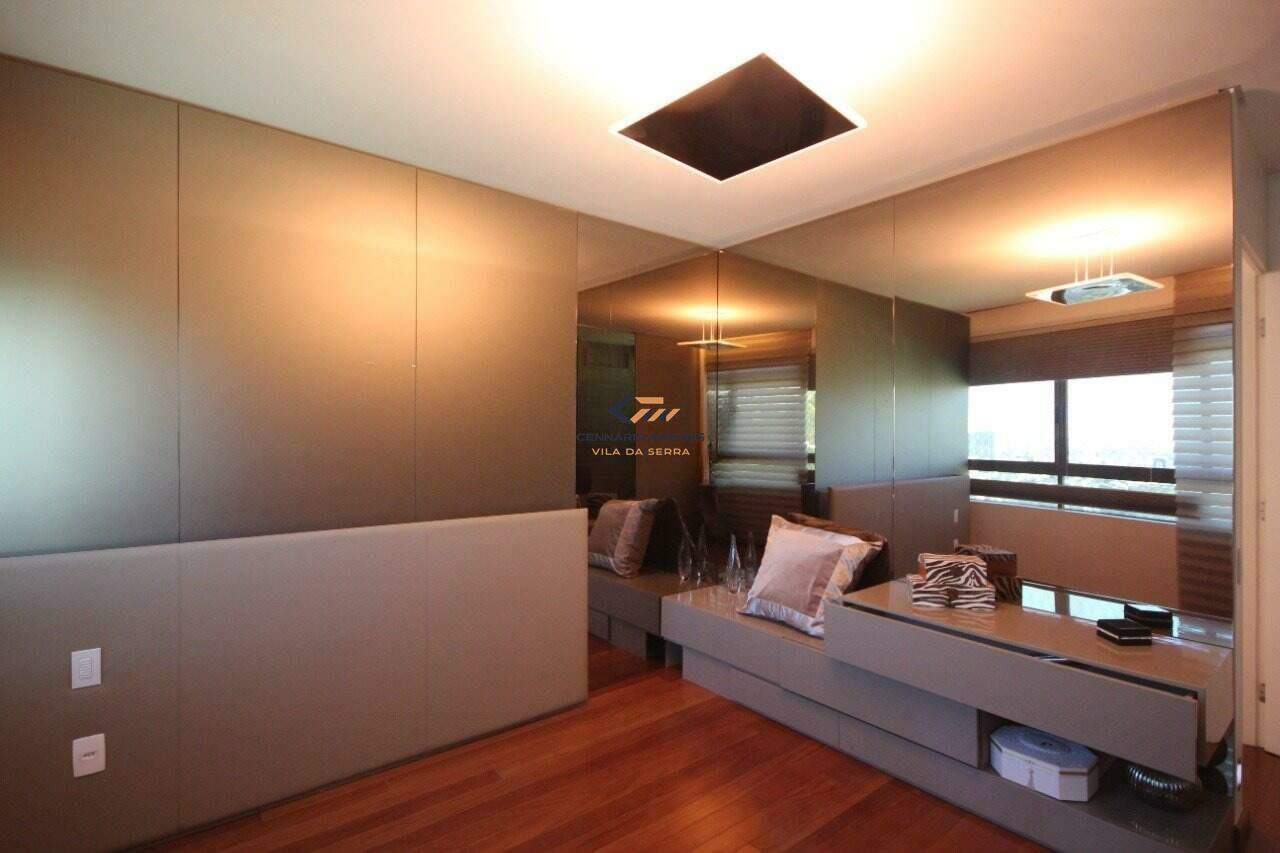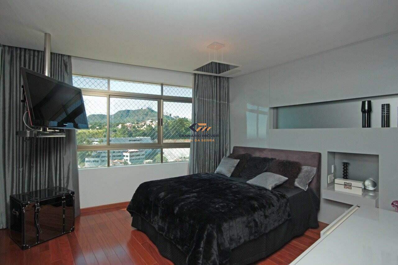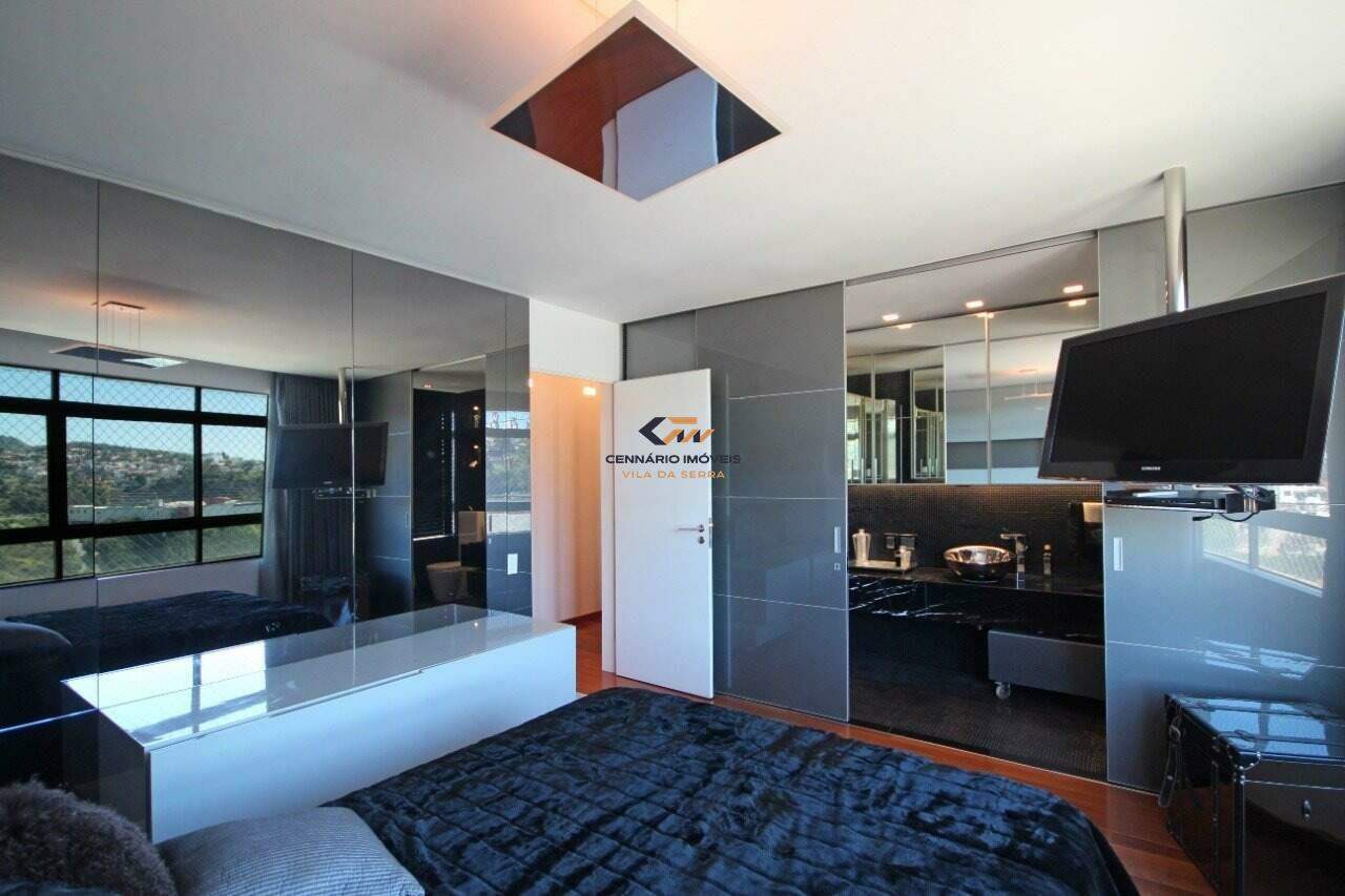 Apartamento alto luxo 3 quartos 402 m²! Prédio projetado pelo Gustavo Penna , em ótima localização; hall social decorado; porteiro 24 hs; circuito interno de TV; lazer completo com piscina com raia, piscina infantil, sauna, espaço gourmet, salão de festas, salão de jogos, espaço fitness, kids, quadra de tênis coberta, squash; vagas para visitantes. Apartamento com projeto atual de interiores do escritório Bellini Arquitetura e Construção , São 402 m2 de muito requinte, sala para 3 amplos ambientes, piso em mármore branco piguês.Varanda gourmet com bancadas em Silestone, já com grelha e cooktop, além da lava louça. Pendentes italianos e vista surreal para Belo Horizonte.Hall de entrada exclusivo com divisórias Cinex, elevador codificado.Uma das salas conta com lareira.Forma elíptica do prédio possibilita uma vista 180 graus das salas.Lavabo com todo revestido em mármore crema marfil, pia esculpida em pedra Ônix e bacia da linha quadratta da Deca Parte íntima com piso em madeira maciça.Estar íntimo amplo com detalhes em pastilha de madeira, já com toda marcenaria instalada em laca bege, 3 Suítes, a suíte de hospedes em mármore crema marfil, chuveiro hansgrohe e bacia sanitária Duravit.Suíte junior com marcenaria em laca, banho com bancadas em mármore nero marquina, cabine de banho hermeticamente fechada, bacia sanitária Duravit da linha Starck e cuba Roca, suíte máster com varanda, super ampla, com closet amplo, sala de banho com ferragens e chuveiros hansgrohe, hidromassagem e bacias sanitárias hasgrohe.Cozinha/Copa montada e com armários, elevador de carga e de veículos chega diretamente na cozinha e ali tem uma vaga de garagem interna. Banheiro de empregada. 6 vagas cobertas, elevador de carro ( sendo 1 vaga no pavimento do apartamento).