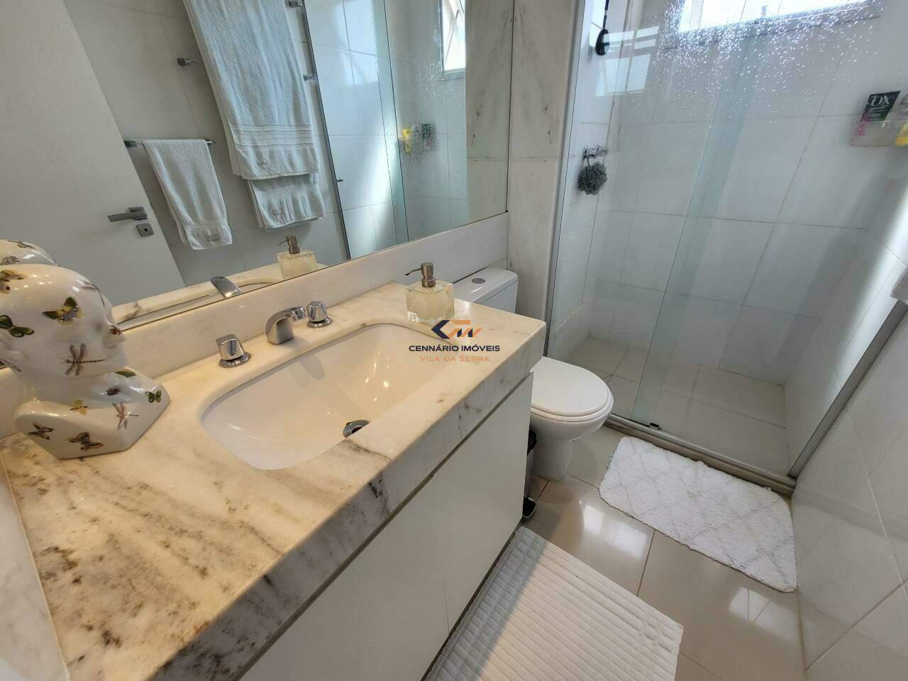 Apartamento de 2 quartos para locação no Edifício Cennário, torre paisagem, no Vila da Serra em Nova Lima-MG. Próximo ao Hospital Vila da serra. Prédio: Fachada revestida em textura mineralizada com detalhes em cerâmica, hall social decorado, portaria 24 horas, quadra poliesportiva, quadra de tênis, piscinas adulto e infantil, salão de jogos, fitness, espaço gourmet, lounge, brinquedoteca, praças, mirantes, espaço zen, spa, jardins, gazebo gourmet, pet-play, 02 vagas de garagem. Apartamento: Sala para dois ambientes, piso em porcelanato, teto rebaixado com projeto de iluminação, varanda incorporada a sala, (um dos quartos transformados em escritório), 1 quarto suíte, com armários, piso em laminado. Banho com piso e bancada em mármore, armários, box, espelhos, Cozinha americana com bancada em granito, armários, Área de serviço.