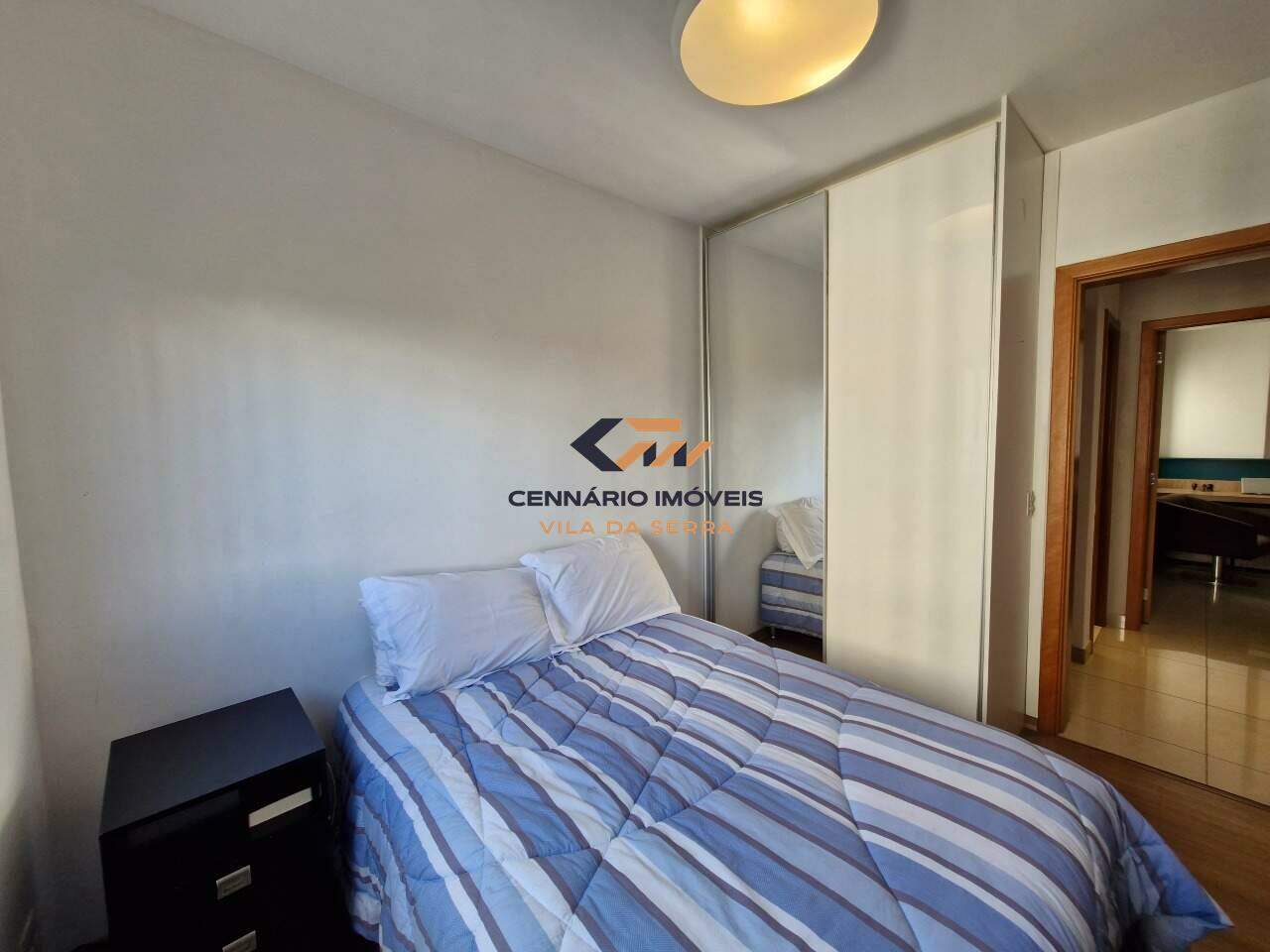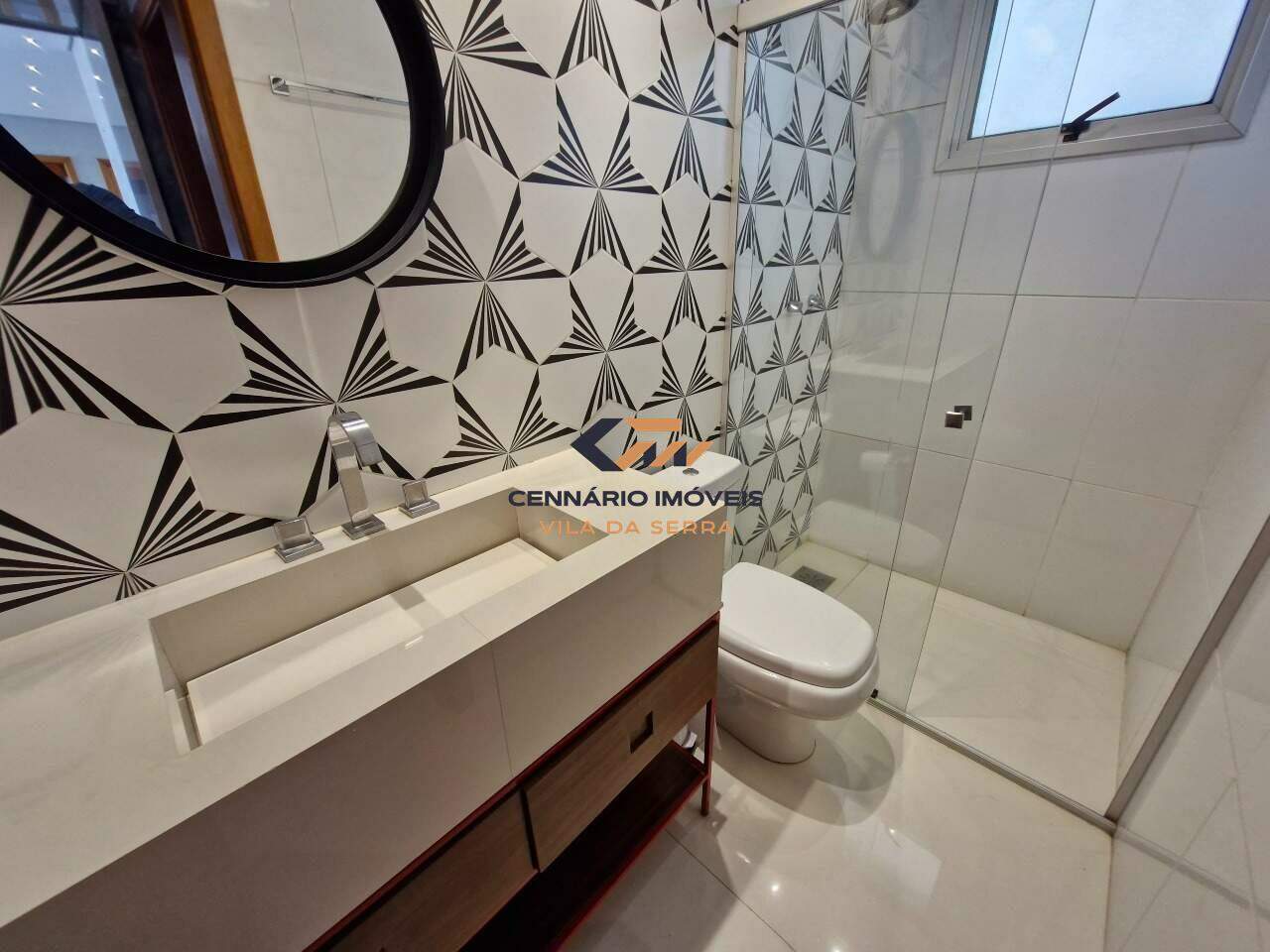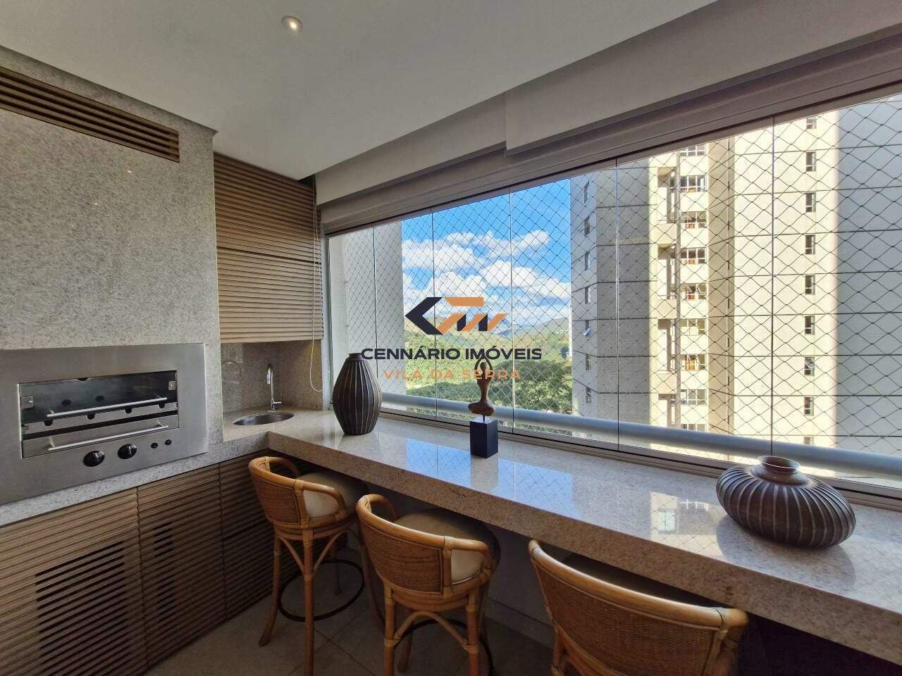 Apartamento de 3 quartos à venda no Edificio Cennario localizado no Vila da Serra em Nova Lima - MG. Prédio: Fachada revestida em textura mineralizada com detalhes em cerâmica, hall social decorado, portaria 24 horas, quadra poliesportiva, quadra de tênis, piscinas adulto e infantil, salão de jogos, fitness, espaço gourmet, lounge, brinquedoteca, praças, mirantes, espaço zen, spa, jardins, gazebo gourmet, petplay, 02 vagas de garagem livres, box de despejo. Apartamento: Sala para 2 ambientes com piso em porcelanato, teto rebaixado com projeto de iluminação, varanda gourmet com churrasqueira. Lavabo. 03 quartos com armários, sendo 1 suíte com closet amplo, piso em laminado. Banho social e suíte com armários, box, espelhos, pisos e bancadas em mármore, Cozinha com armários, piso e bancada em granito, Área de serviço, banho de empregada. OBS: EXCELENTES ARMÁRIOS TODOS EM LAKA, CHURRASQUEIRA A GAS.