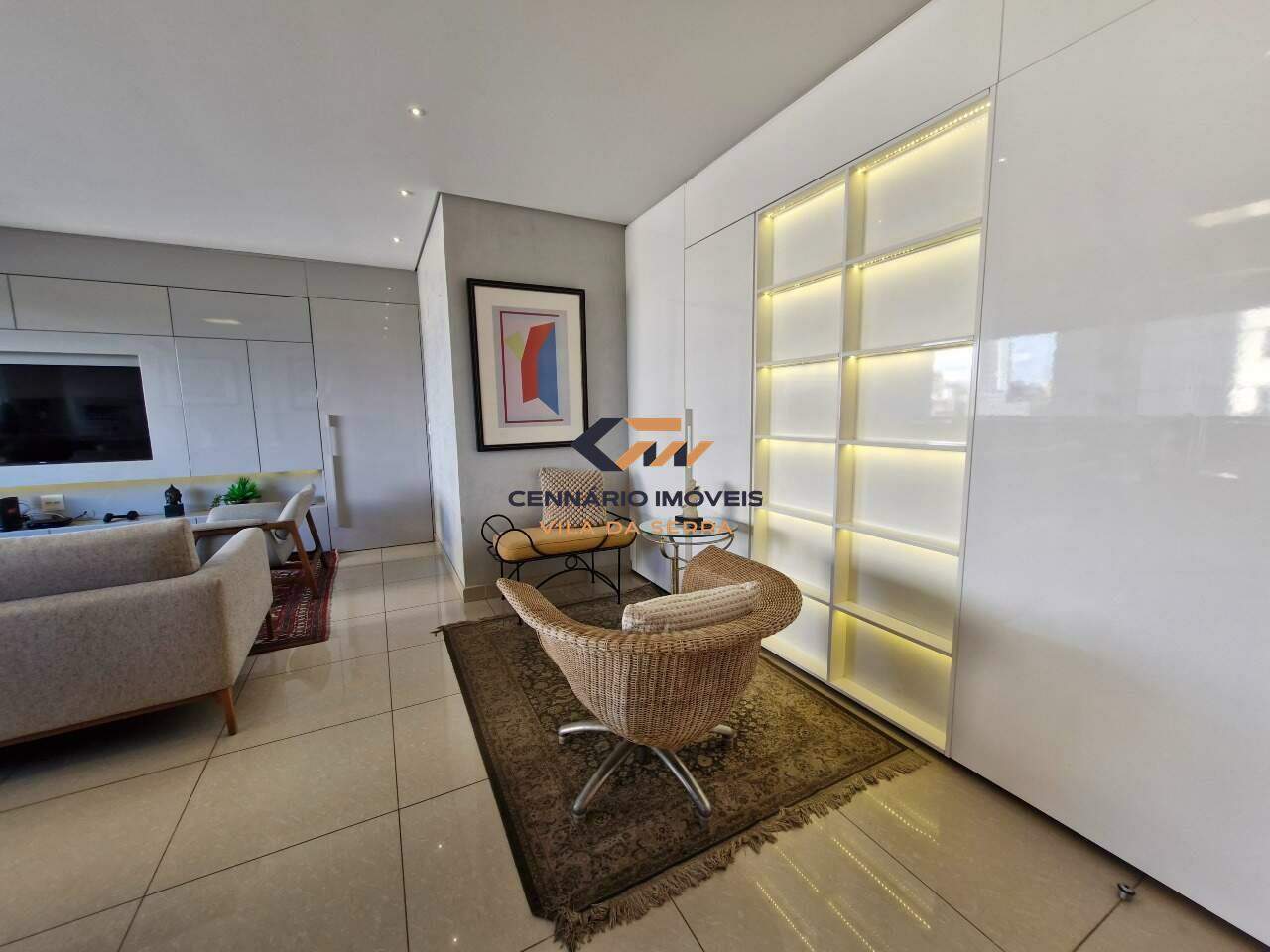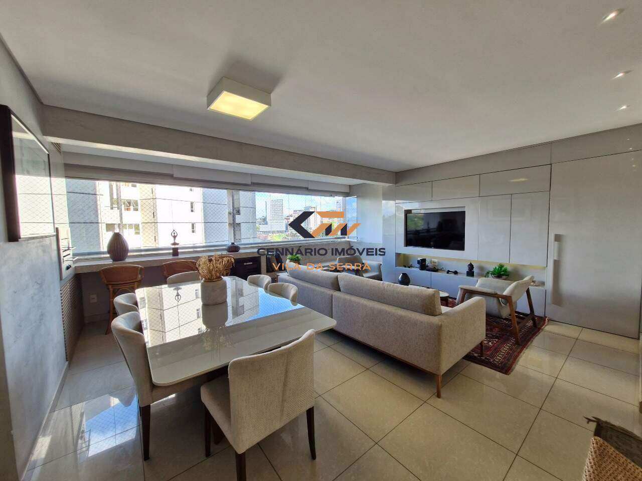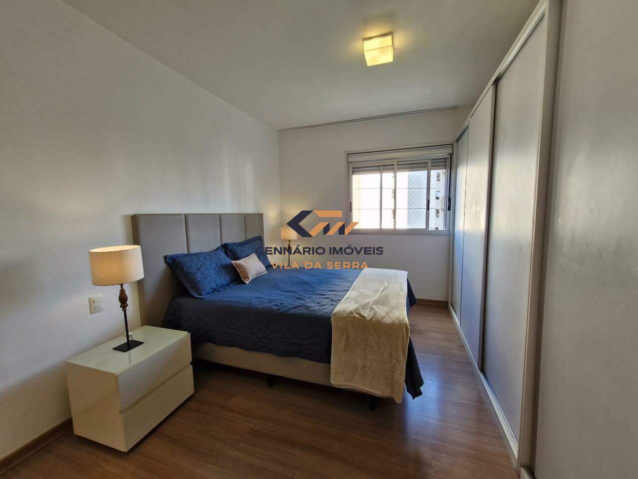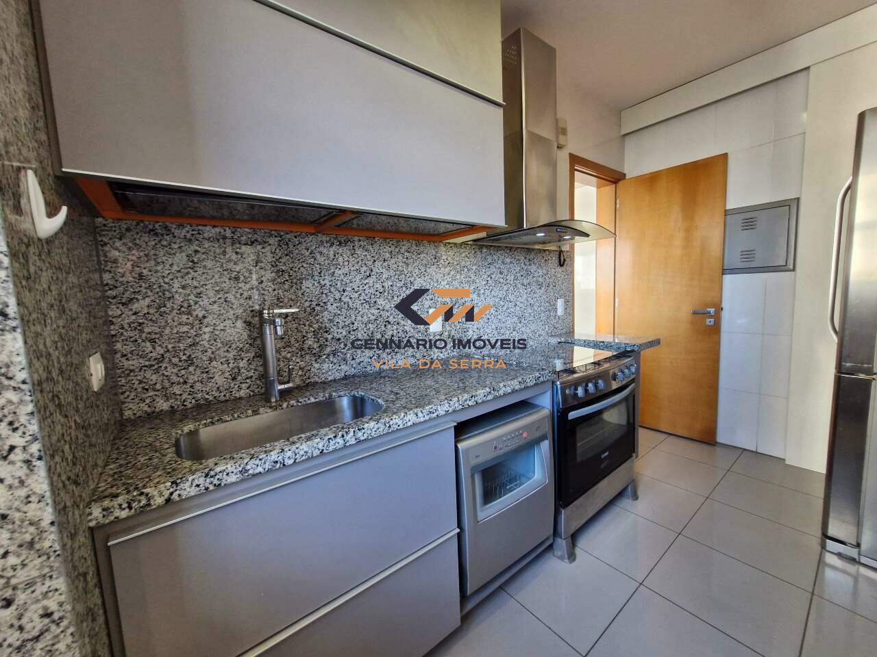 Apartamento de 3 quartos à venda no Edificio Cennario localizado no Vila da Serra em Nova Lima - MG. Prédio: Fachada revestida em textura mineralizada com detalhes em cerâmica, hall social decorado, portaria 24 horas, quadra poliesportiva, quadra de tênis, piscinas adulto e infantil, salão de jogos, fitness, espaço gourmet, lounge, brinquedoteca, praças, mirantes, espaço zen, spa, jardins, gazebo gourmet, petplay, 02 vagas de garagem livres, box de despejo. Apartamento: Sala para 2 ambientes com piso em porcelanato, teto rebaixado com projeto de iluminação, varanda gourmet com churrasqueira. Lavabo. 03 quartos com armários, sendo 1 suíte com closet amplo, piso em laminado. Banho social e suíte com armários, box, espelhos, pisos e bancadas em mármore, Cozinha com armários, piso e bancada em granito, Área de serviço, banho de empregada. OBS: EXCELENTES ARMÁRIOS TODOS EM LAKA, CHURRASQUEIRA A GAS.