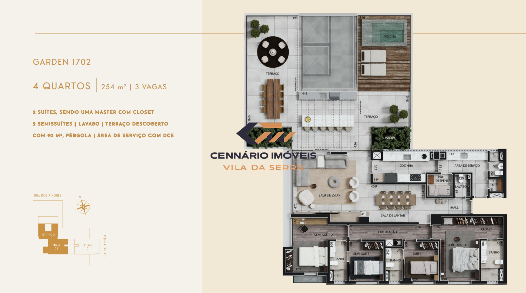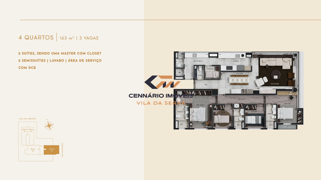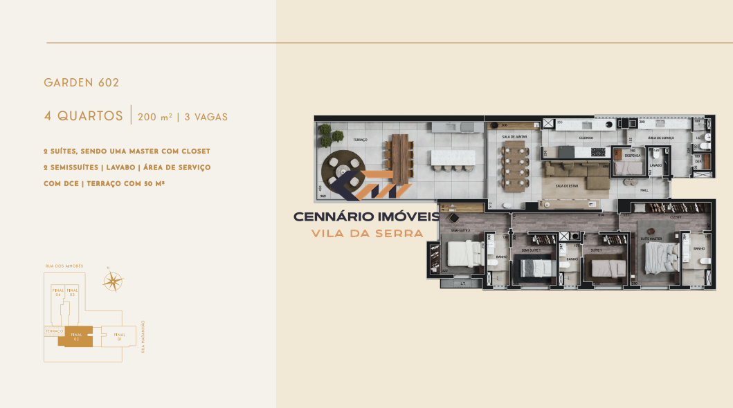 Apartamento Garden 4 quartos, 2 suítes, 4 vagas, para venda no bairro Funcionários. Prédio com Diversas opções de planta, sendo: 20 apartamentos tipo | 3 quartos | 2 vagas 36 apartamentos tipo | 4 quartos | 3 vagas 3 apartamentos garden | 4 quartos | 3 ou 4 vagas 3 coberturas | 4 quartos | 3 ou 4 vagas 3 vagas compartilhadas para carregamento de carro elétrico (1 por pavimento de garagem) SALÃO DE FESTAS ? GOURMET ? CHURRASQUEIRA ? PLAYGROUND ? KIDS ? FITNESS ? SAUNA ? PISCINAS ADULTO E INFANTIL ? MASSAGEM ? ESPAÇO DE CONVENIÊNCIA *SERÁ ENTREGUE UM MEDIDOR INDIVIDUAL POR PRUMADA DOS APARTAMENTOS. A CONTRATAÇAO DE UMA EMPRESA ESPECIALIZADA PARA A LEITURA DOS MEDIDORES É DE RESPONSABILIDADE DO CONDOMINIO ** OS EQUIPAMENTOS FAZEM PARTE DO ENXOVAL DO CODOMINIO
