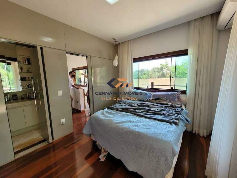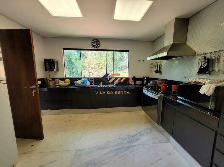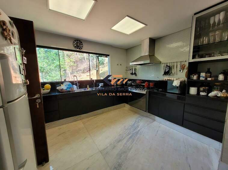 Casa 3 quartos para venda em condomínio fechado Pasárgada, 300 m2 área construida, lote de 1200m2, em Nova lima. Casa: Condominio fechado com parques, portaria 24 horas com segurança, terreno com 1200m2, 3 vagas de garagem cobertas, box despejo, quarto para visitantes. 1 Nivel: Sala para 3 ambientes com piso em mármore, lareira, varandão com acesso ao espaço gourmet, lavabo, cozinha americana, varanda, área de serviço. 2 Nivel: 3 quartos com piso em tabua corrida, varandão, sendo 1 suite, banhos com pisos e bancadas e mármore, armários, box, espelhos,