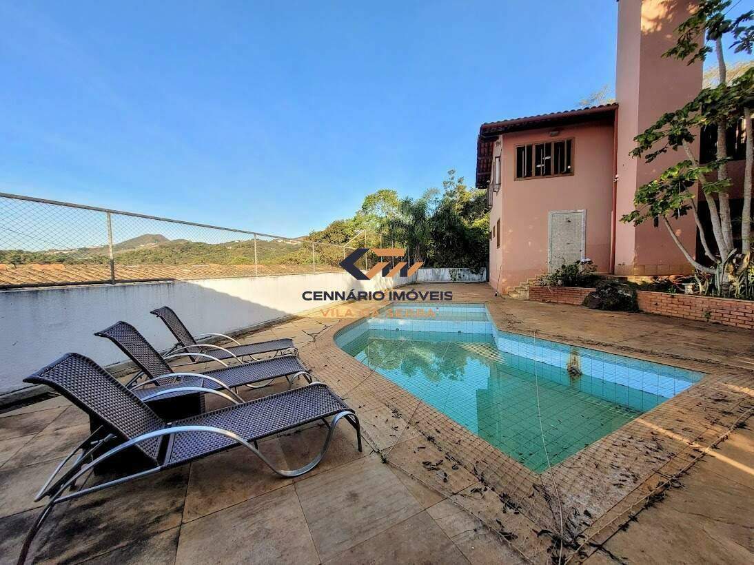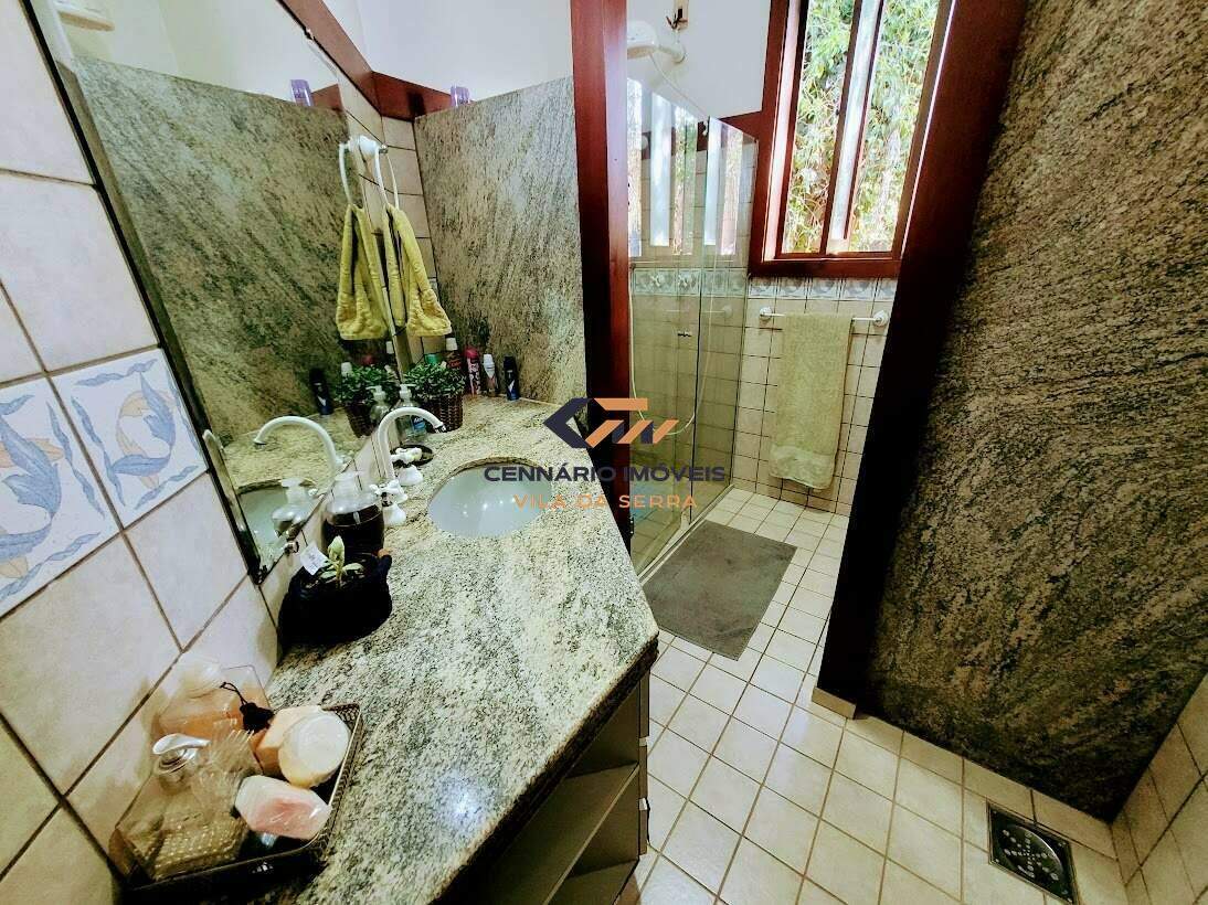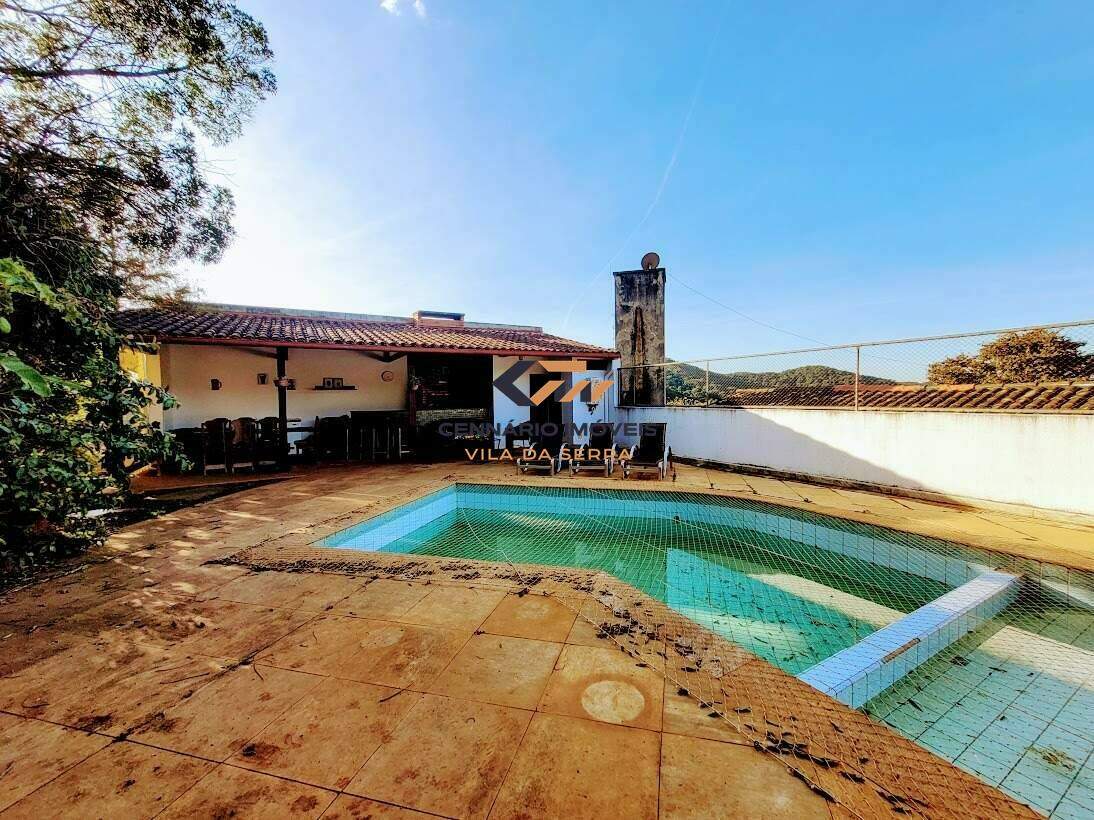 Casa 4 quartos para venda no Condomínio Ouro Velho Mansões em Nova Lima -MG. Casa: rústica com 4 quartos, sendo uma suíte máster com banheira de hidro e closet. Lavabo. 2 salas para dois ambientes cada, salão de jogos, salão de festas, cozinha americana com a copa. Área de serviço, 2 quartos com um banheiro do lado da área serviço. Pisos em pedra ouro preto e tábua corrida Varanda em todos os quartos virados, para o pomar com várias árvores frutíferas produzindo, como manga, jabuticaba, acerola, dentre outras. Piscina e sauna integrada com área gourmet. Com vista exuberante