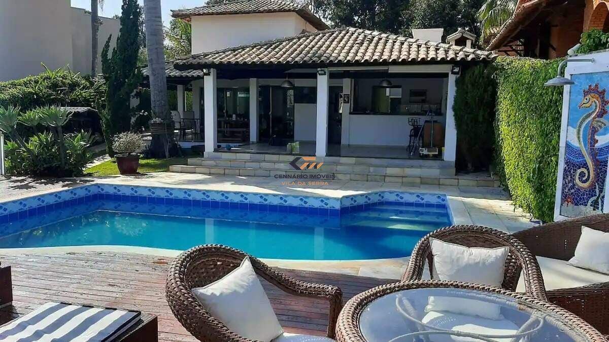 Casa 7 quartos, 4 suítes, 5 vagas para a venda em Escarpas Do Lago, Capitólio - MG Casa mobiliada com terreno de 708m² com área construída de 352m², com vista para o lago, 5 vagas de garagem sendo 2 cobertas e 3 descobertas. Sala de TV e jantar com piso em porcelanato; 7 quartos, com 4 suítes, sendo 1 com varanda integrada e 1 semi-suíte com piso em porcelanato; Lavabo; Cozinha americana com piso em porcelanato; Área externa com 2 quartos, sala e banheiro; Espaço gourmet com churrasqueira, piscina e jardins;