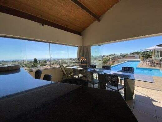 CASA 7 QUARTOS COM LAZER - BAIRRO BELVEDERE PARA LOCAÇÃO - BELO HORIZONTE - MG Lazer com piscina de raia, espaço gourmet, sauna, área livre, mirante e jardins. Casa: Sala ampla para 4 ambientes fechada com vidro com bela vista. Cozinha americana planejada com armários e coifa com mesa e bancadas de granito com área de serviço. 03 quartos sendo 1 suíte master e 2 com varanda. 02 vagas de garagem. Casa com 2 anexos sendo 1 com 2 quartos 01 suíte, cozinha americana independente. Outro anexo com 2 quartos, suíte, varanda, cozinha americana.