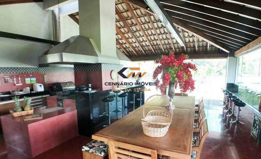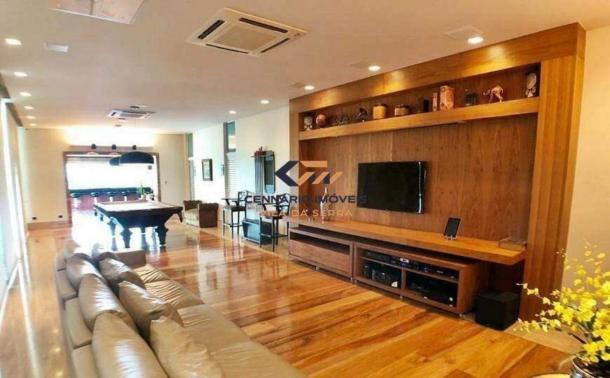 Casa a venda no Ville de Montagne, 2200m2 de área construída. Casa espetacular de altíssimo luxo à venda em condomínio fechado. São 2.200 m² de construção distribuídos da seguinte forma: Lazer: Quadra poliesportiva, academia, salão de jogos, sala de carteados, sauna, espaço zen, piscina aquecida e espaço gourmet com churrasqueira, fogão e forno a lenha, forno de pizza, 5 vagas cobertas e paralelas (cabem até 25 carros na garagem). Diferenciais: Acabamento de alto luxo, elevador, aquecimento solar, automação completa na casa (luzes, cortinas, aquecedores, oficina, ar condicionado central, tudo funciona através de aplicativo), pomar, horta com verduras e legumes orgânicos, 3 depósitos, 3 quartos para funcionários, belíssimo projeto paisagístico, vista para as montanhas e privacidade total. 1 pavimento: 3 salas amplas, varanda, escritório, 2 lavabos, cozinha espaçosa com despensas, espaço gourmet completo com 2 banhos de apoio, lavanderia. 2 pavimento: 5 suítes sendo todas com closet e varanda, 2 cozinhas de apoio com frigobar, sala de tv, banho social e rouparia.