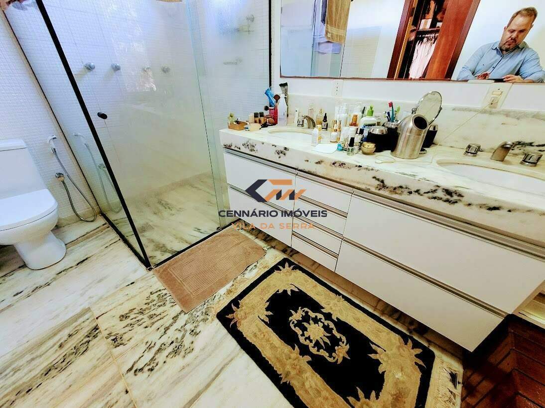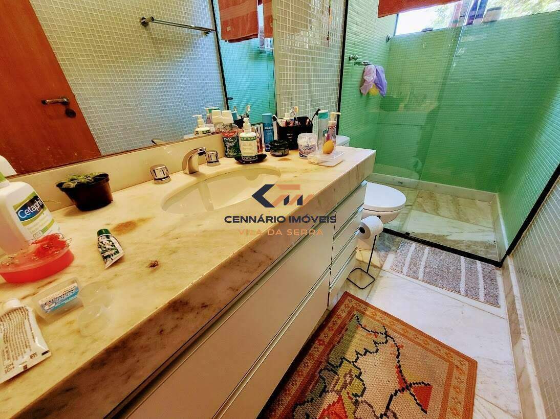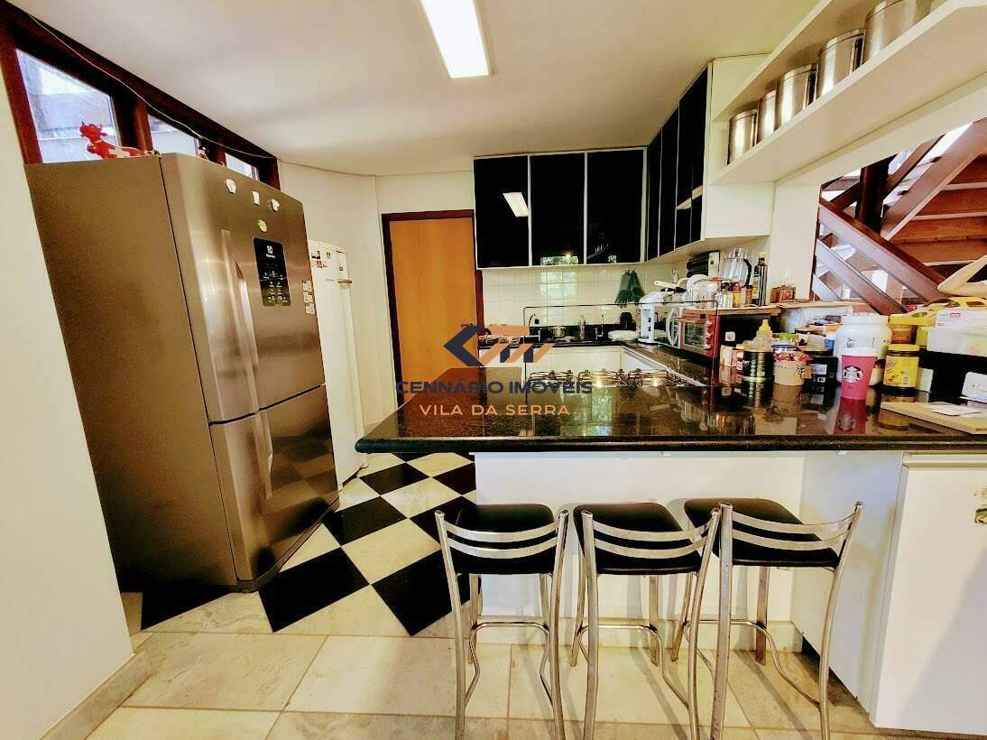 Casa para venda no condomínio Ville de Montagne, 4 quartos 2 suítes e 2 semi-suítes, 3 vagas, Nova lima -MG Casa: com lazer, piscina, casa de caseiro, churrasqueira, aquecimento solar, 3 vagas de garagem. 1 Pavimento: Sala ampla para 02 ambientes com piso em mármore, lavabo, varanda gourmet com churrasqueira, cozinha americana com piso em mármore e bancadas em granito, área de serviço, DCE, despensa. 2 Pavimento: 4 quartos sendo 2 suítes e 2 semi-suítes, com piso em laminado, closet, estar íntimo com varanda e rouparia. Suíte master com ofurô,suite com hidro, banhos com pisos e bancadas em mármore, armários, box, espelhos.