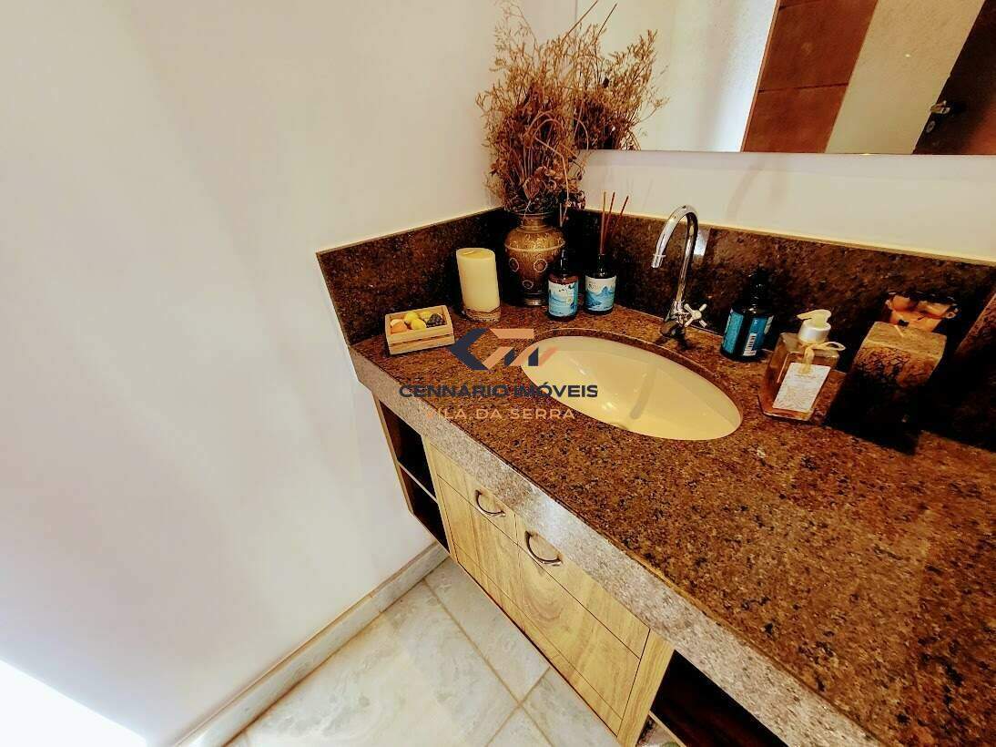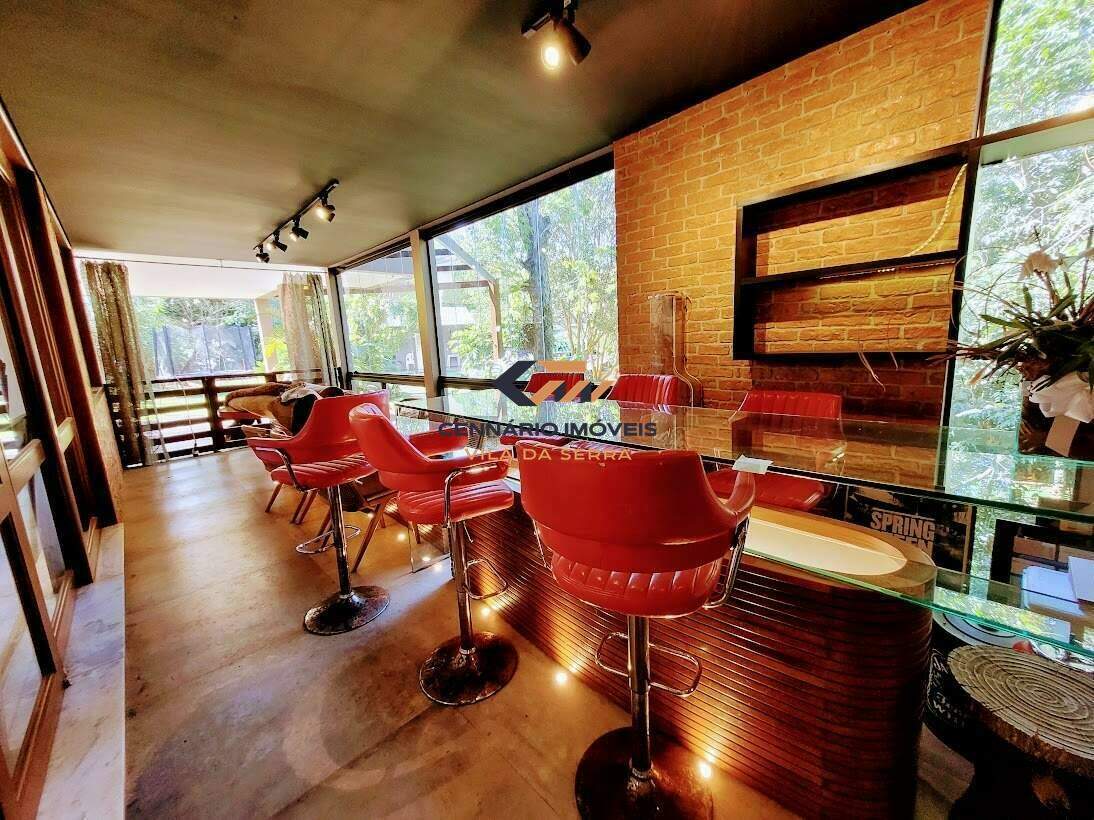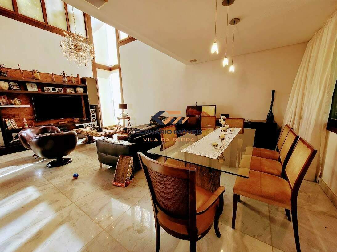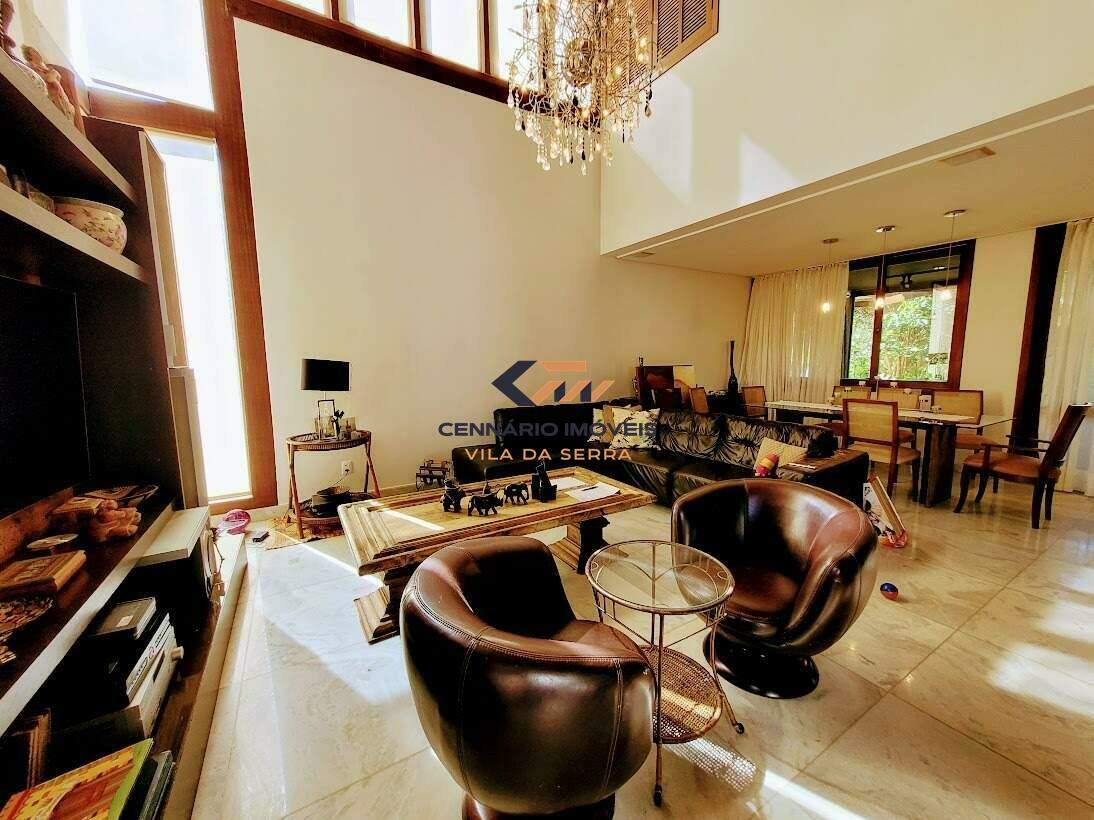Casa para venda no condomínio Ville de Montagne, 4 quartos 2 suítes e 2 semi-suítes, 3 vagas, Nova lima -MG Casa: com lazer, piscina, casa de caseiro, churrasqueira, aquecimento solar, 3 vagas de garagem. 1 Pavimento: Sala ampla para 02 ambientes com piso em mármore, lavabo, varanda gourmet com churrasqueira, cozinha americana com piso em mármore e bancadas em granito, área de serviço, DCE, despensa. 2 Pavimento: 4 quartos sendo 2 suítes e 2 semi-suítes, com piso em laminado, closet, estar íntimo com varanda e rouparia. Suíte master com ofurô,suite com hidro, banhos com pisos e bancadas em mármore, armários, box, espelhos.