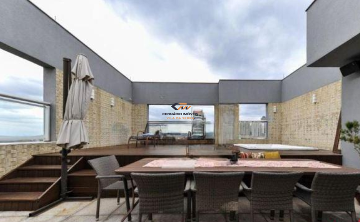 Cobertura 4 quartos, 4 vagas, 244m2 para a venda no Edifício Cennário em Nova Lima Prédio: Condomínio resort; prédio em textura mineralizada com detalhes em cerâmica; hall social decorado; portaria 24h; lazer com quadra poliesportiva, quadra de tênis, piscinas adulto e infantil, salão de jogos, fitness, espaço gourmet, lounge, brinquedoteca, praças, mirantes, espaço zen, spa, jardins, gazebo gourmet, pet play; box despejo; 4 vagas de garagem. 1 Pavimento; Sala com pé direito duplo com projeto de iluminação e varanda integrada, 4 quartos com armários, sendo 01 suíte, Banhos com pisos e bancadas em mármore, espelhos, armários e box. Cozinha com armários planejados, piso e bancada em granito, Área de serviço independente. 2 Pavimento: Sala ampla com piso em porcelanato, lavabo, área externa com deck de madeira, piscina e área gourmet, vista Panorâmica definitiva.