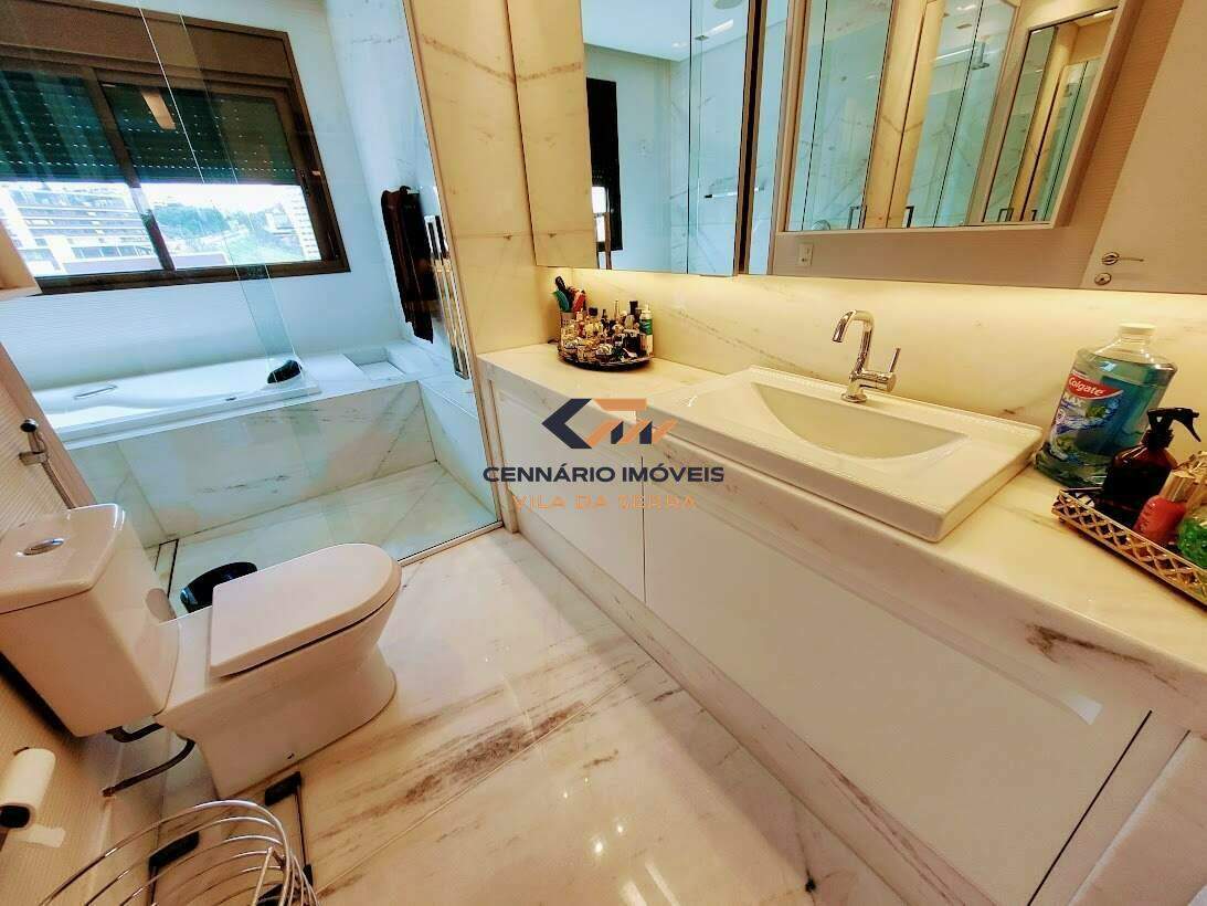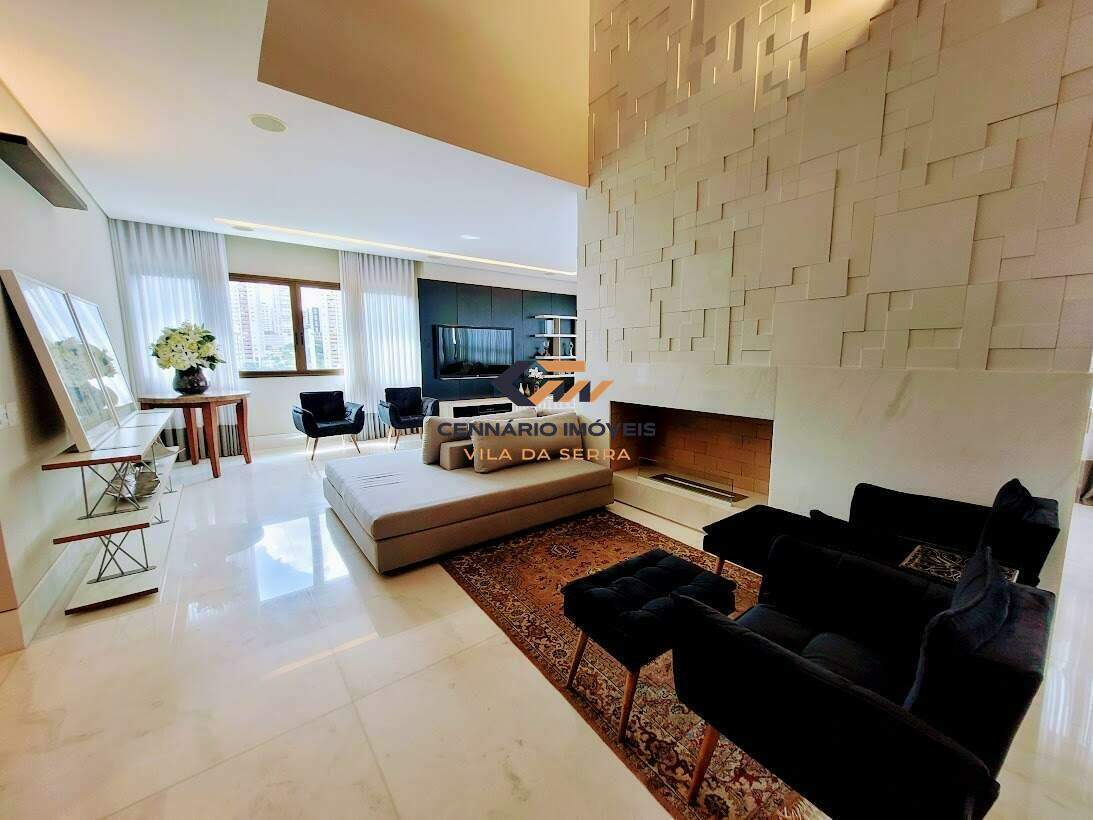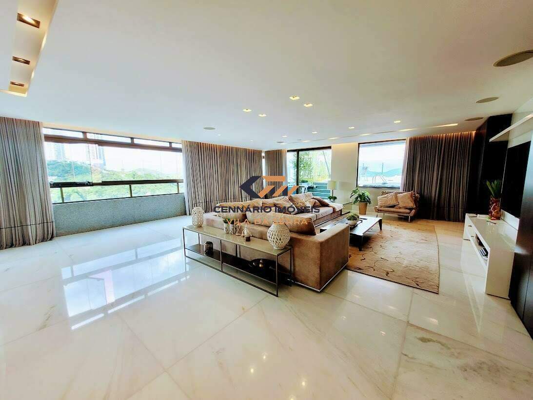 Prédio: 100% Revestido em granito, hall social decorado, portaria 24 horas, lazer completo com piscina adulto e infantil aquecida, quadra poliesportiva, espaço gourmet, salão de festas, academia, espaço kids, quadra de tênis, 6 vagas Cobertura: Sala ampla para 4 ambientes, lareira a gás, com piso em mármore, pé direito duplo, cristaleira e adega. Lavabo com pia esculpida, portas de entrada social e serviço com fechadura eletrônica, armários em laca, teto rebaixado com projeto de iluminação, 3 quartos sendo 3 suítes, com closet, a master com hidro e banheiro sr e sra, armários, box, espelhos, estar intimo. armários no corredor todo em laca. cozinha com armários planejados, cooktop, copa e cristaleira. Área de serviço ampla com dependência completa de empregada. 2 pavimento: escada de acesso em mármore, e guarda corpo em blindex, área comum com ampla sala de televisão, piso em mármore, cozinha gourmet com piso e bancada em granito, espaço para café, 2 lavabos. rouparia. 02 quartos sendo 2 suítes, ambos com closet e banheiro em granito. Área externa com jardim, jacuzzi, piscina com aquecimento solar e churrasqueira. Obs: o 2 pavimento possui entrada independente tendo acesso pelo elevador do prédio, ar condicionado nos quartos.