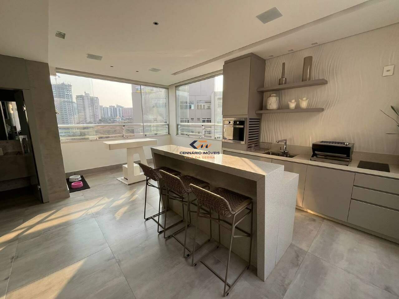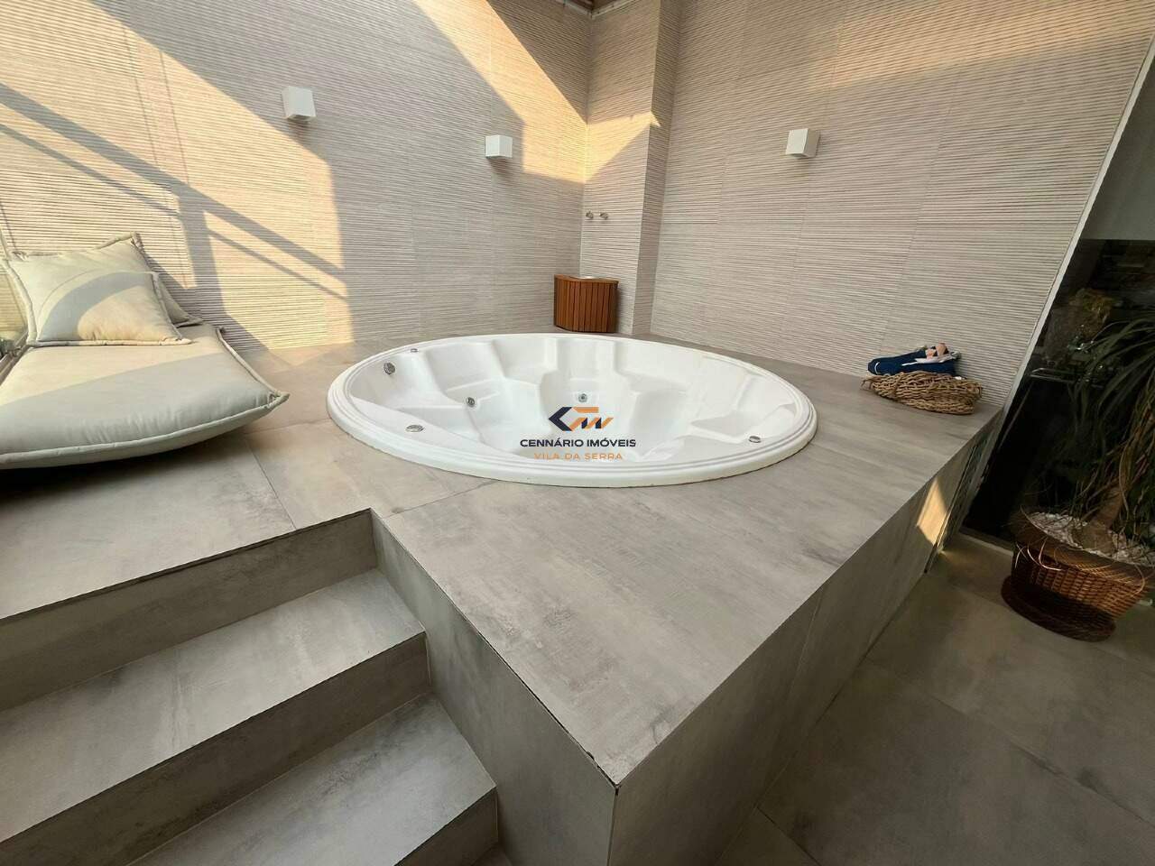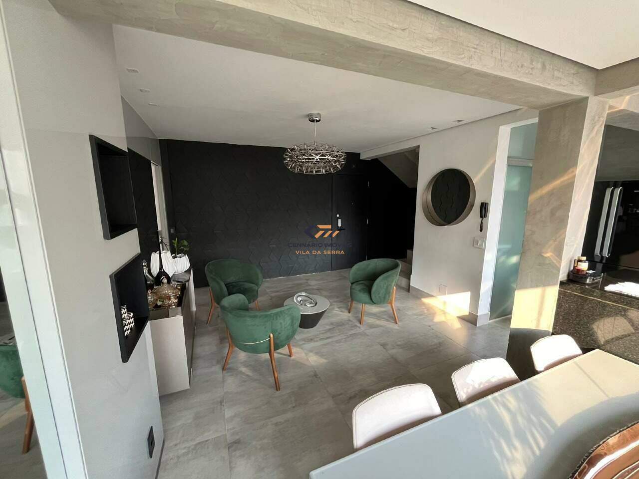 Cobertura de 2 quartos, 3 vagas para venda no Edifício Cennário no Vila da Serra em Nova Lima-MG. Próximo ao Hospital Vila da serra. Prédio: Fachada revestida em textura mineralizada com detalhes em cerâmica, hall social decorado, portaria 24 horas, quadra poliesportiva, quadra de tênis, piscinas adulto e infantil, salão de jogos, fitness, espaço gourmet, lounge, brinquedoteca, praças, mirantes, espaço zen, spa, jardins, gazebo gourmet, pet-play, 03 vagas de garagem. 1 Pavimento; Sala para dois ambientes, piso em porcelanato, varanda gourmet, 02 quartos com armários, piso em mármore. sendo 1 suíte, Banhos suíte e social com piso e bancada em mármore, armários, box, espelhos, Cozinha americana com armários, piso em mármore e bancada em granito, Área de serviço. 2 Pavimento: Sala com piso em travertino, hidro, banheiro com piso e bancada em mármore, armários, box, espelho, churrasqueira, SPA.