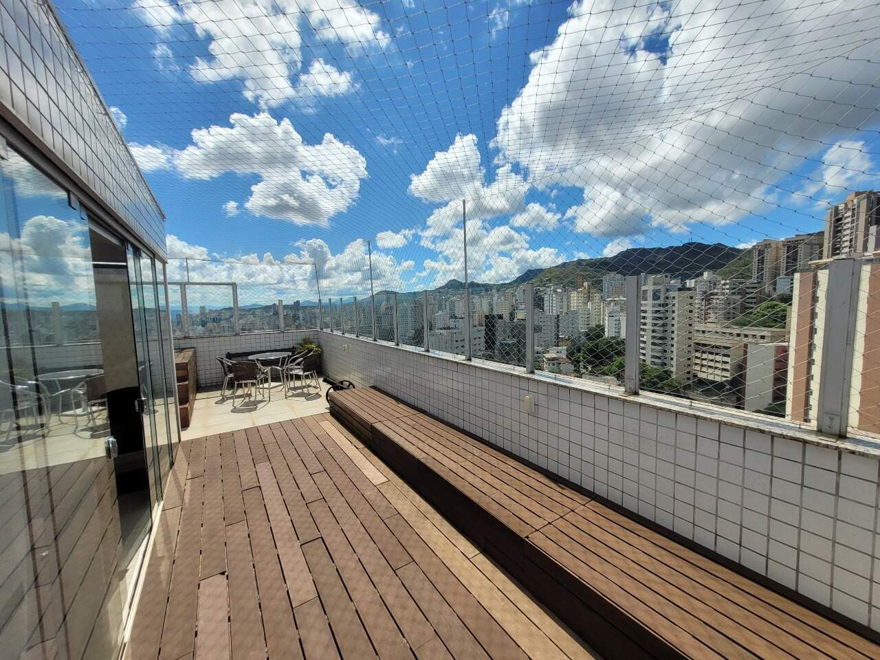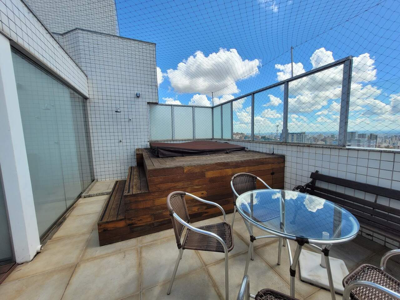 Cobertura duplex 3 suites com 222 m² para venda no Sion Prédio: 100% revestido, hall social, portaria 24 horas, sistema de segurança, elevadores, espaço gourmet, piscina para adulto, piscina infantil, quadra, sauna, vestiário, playground e amplo salão de festas com dois banheiros e cozinha, 4 vagas de garagem paralelas. Cobertura Originalmente 5 quartos, após a reforma 3 suites . 1 Pavimentos: Sala para 03 ambientes com piso em porcelanato, cozinha com armários, pisoe bancada em granito, área de serviço com armários, DCE. 3 quartos sendo 3 suítes, com piso em laminado, 2 closets, suíte principal com closet grande e 2 banheiros. 2 Pavimento: 1 quarto suíte, armário, banheiro, sala para dois ambientes com piso em procelanato, estrutura de som no teto, adega, varanda, lavabo, área gourmet grande com churrasqueira e mesa para 12 lugares, área externa com ducha e deck, com jacuzzi para 6 pessoas.